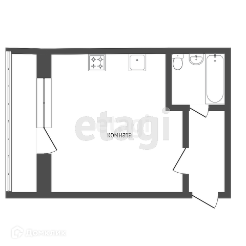 Общая площадь 30,7 - есть возможность разместить большую кухню, зону отдыха, стол, шкаф.