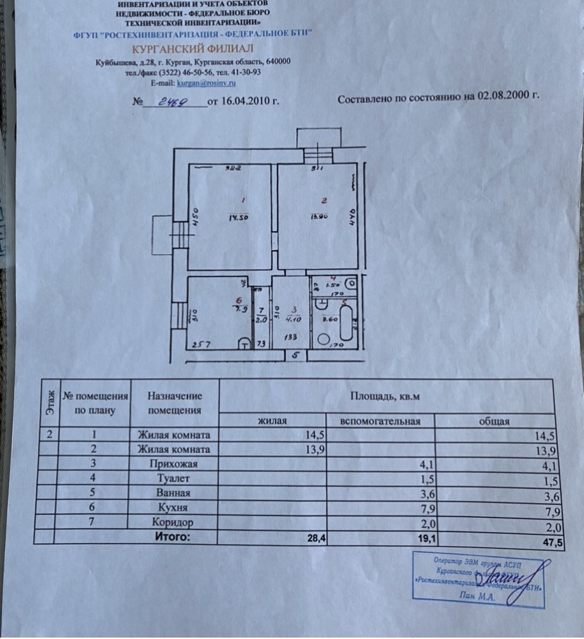 Общая площадь 47.5 м2