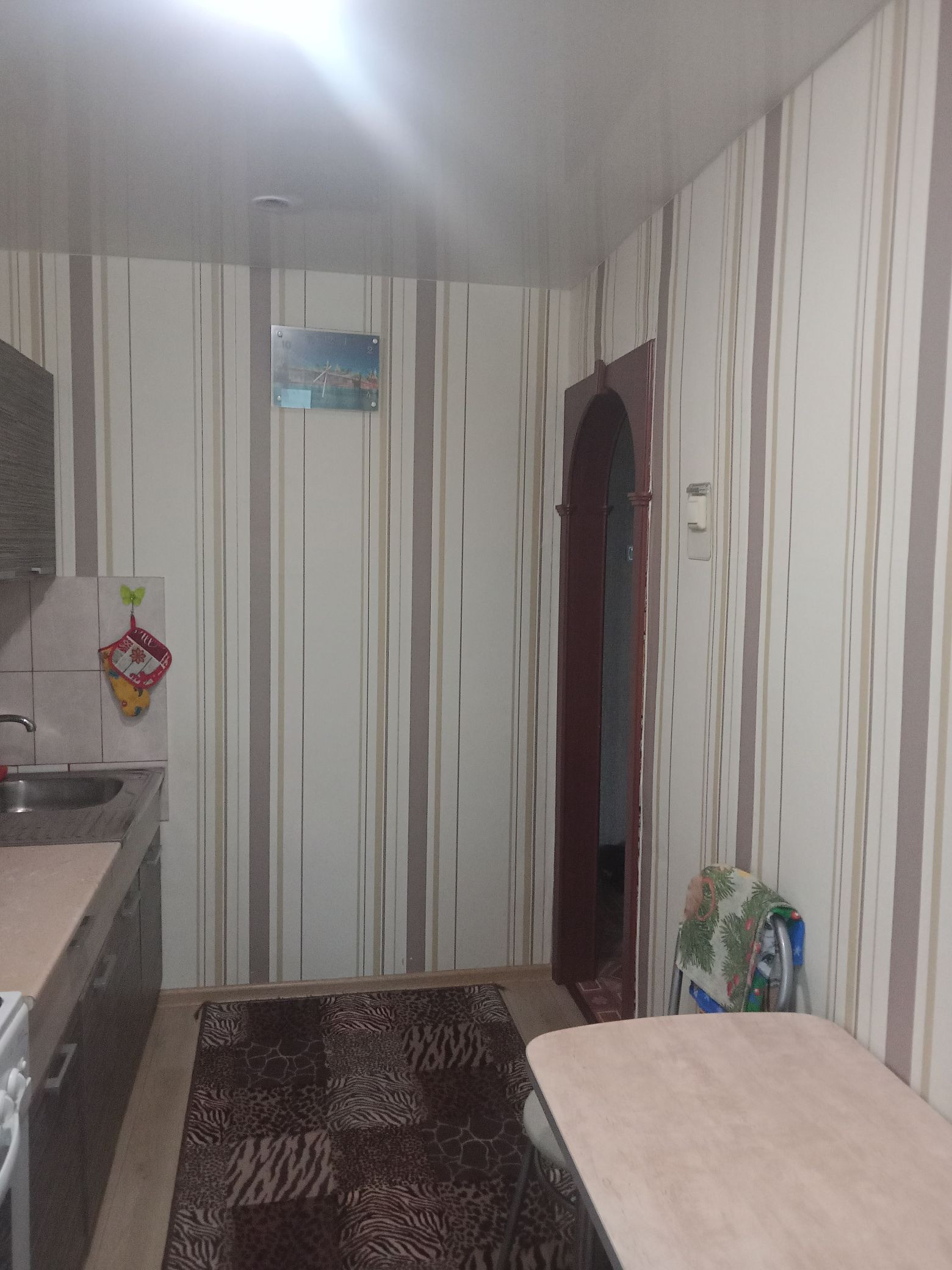 В квартире остаётся шкаф- купе,новый кухонный гарнитур, прихожая в кладовке .