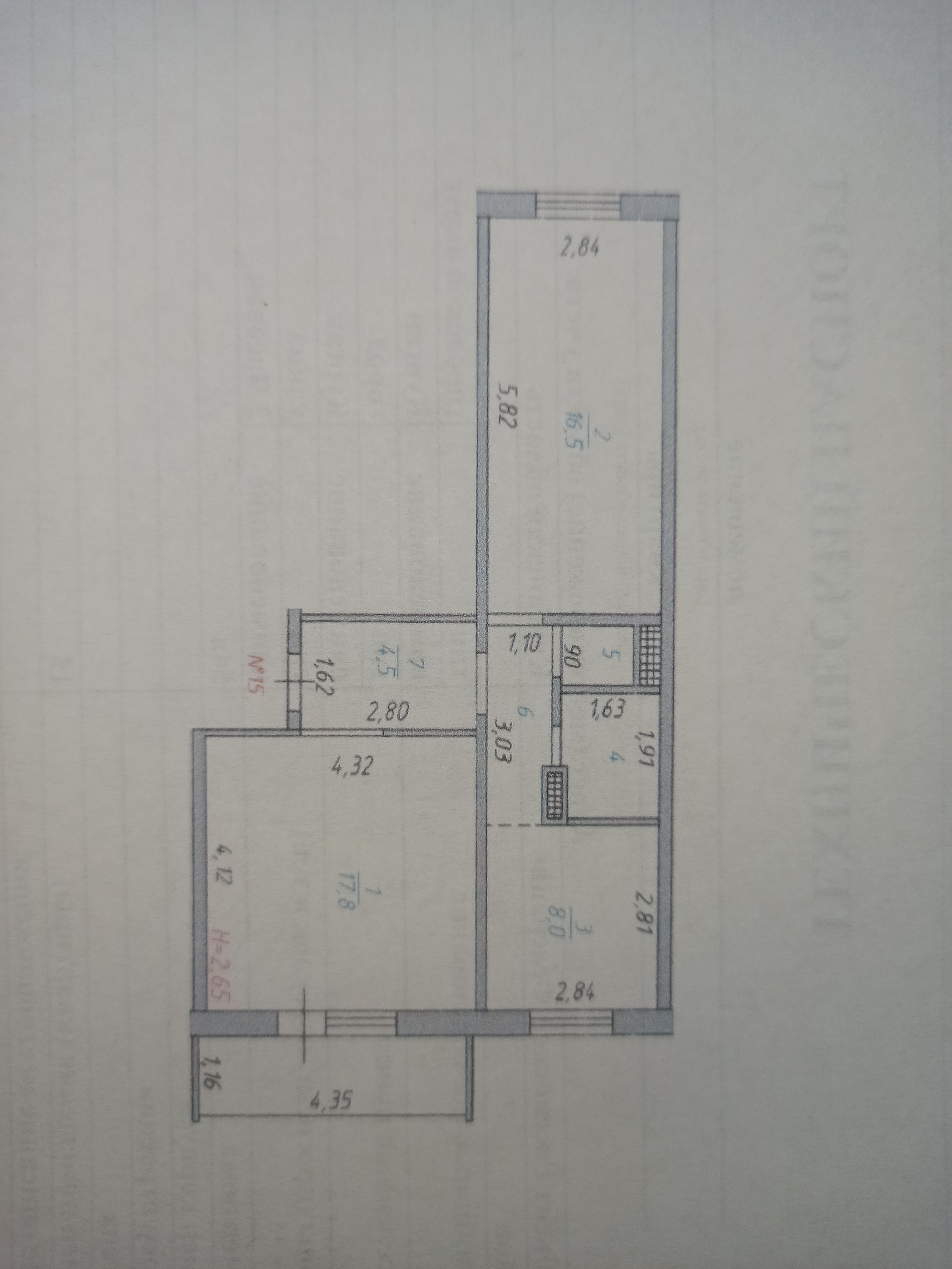 Высота потолков 2.64 м
