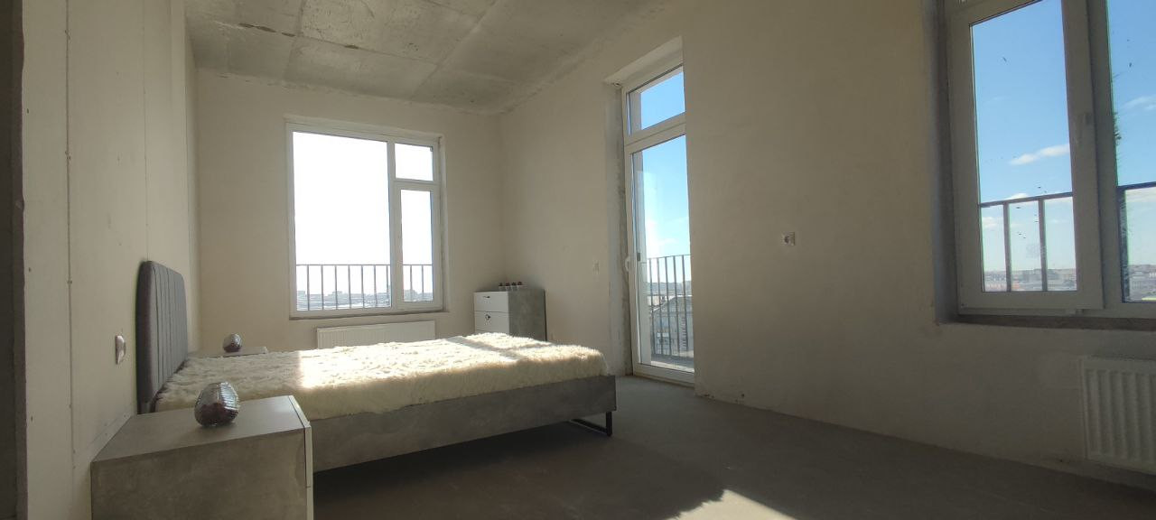 Просторный пентхаус расположен на последнем этаже дома. Семь окон первого уровня квартиры выходят на три стороны: солнце в доме, от рассвета до закат. Площади достаточно, чтобы обустроить кабинет, детские или гостевые комнаты. Для хозяев — отдельная мастер-спальня с лоджией, расположенная вдалеке от остальных комнат. Просторная кухня-гостиная подойдёт для семейных вечеров или приёма гостей.