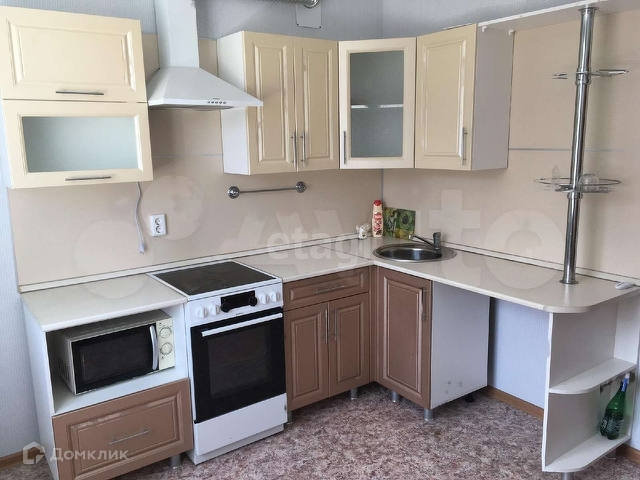 В квартире хороший косметический ремонт,натяжные потолки Остается кухонный гарнитур, шкаф-купе, вытяжка, диван.