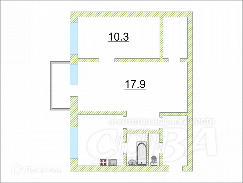 Общая площадь 43 м2