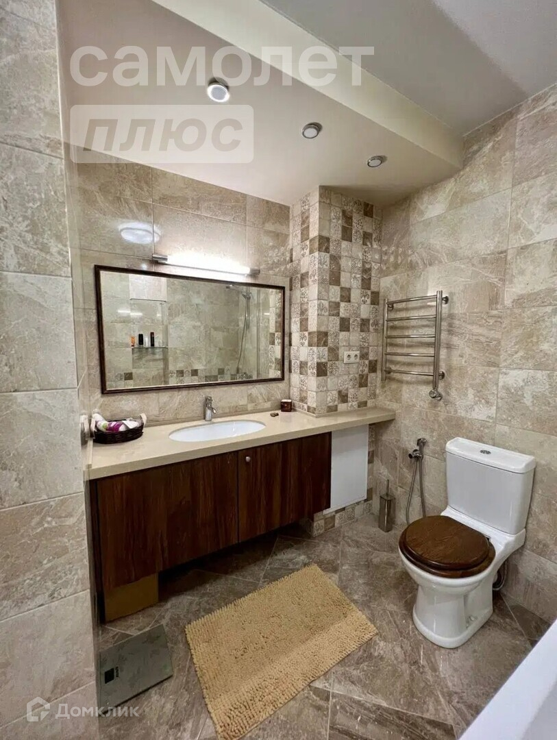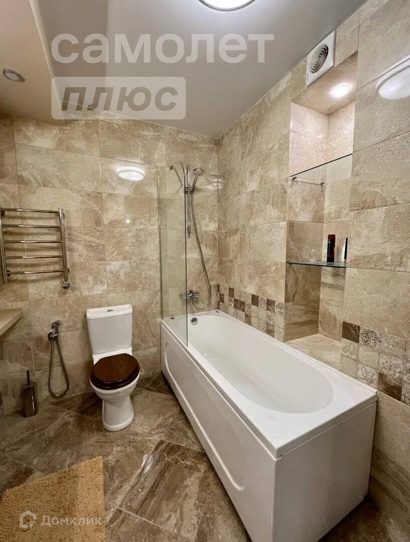 Санузел совмещенный 5,1 кв. м. с подогревом пола, предусмотрено место под водонагреватель.