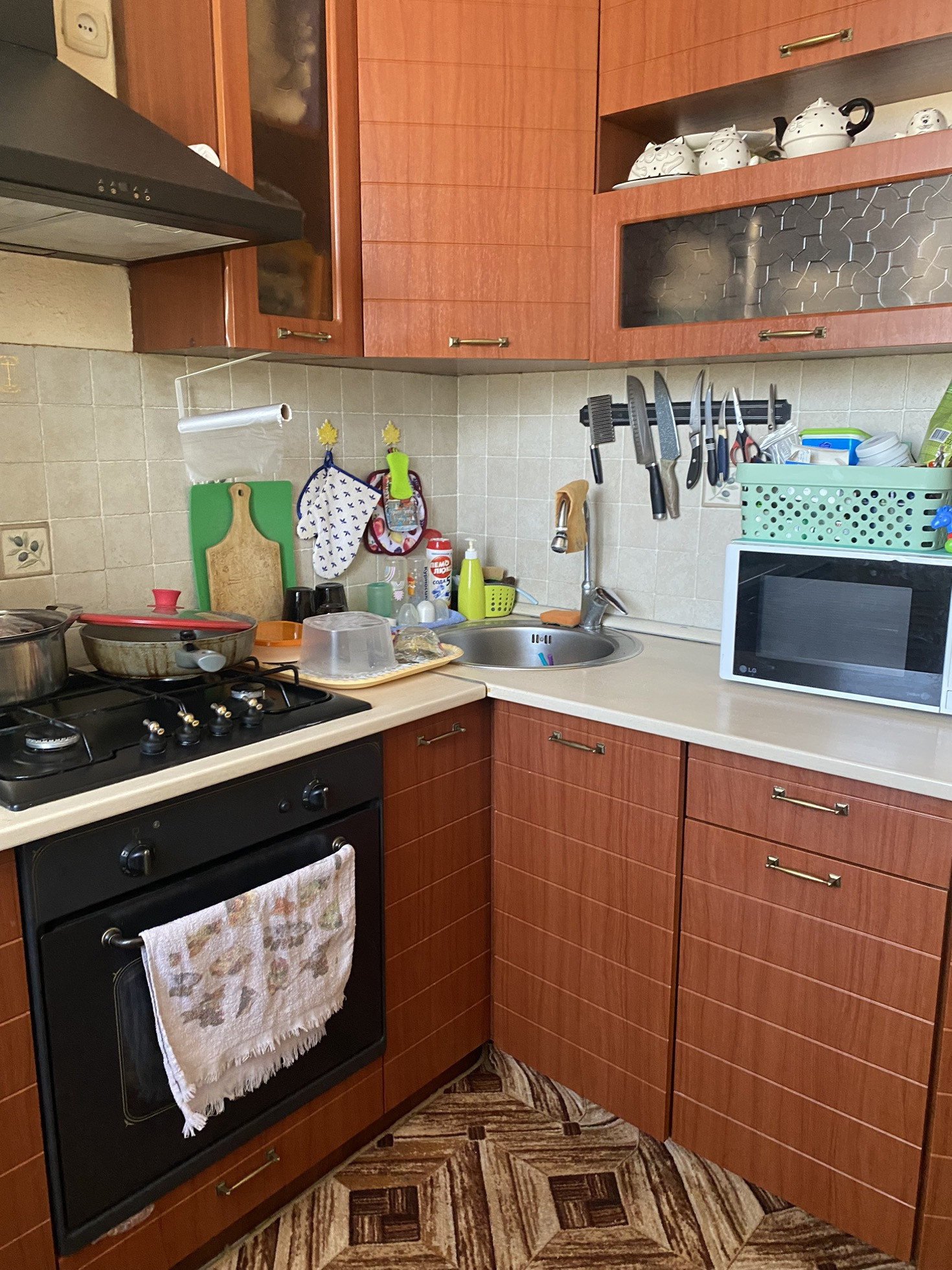 Ремонт делался капитальный для себя . Плитка в кухне ,прихожей и ванной.Ламинат в коридоре,спальне и зале .Соседи дружелюбные,тихие .