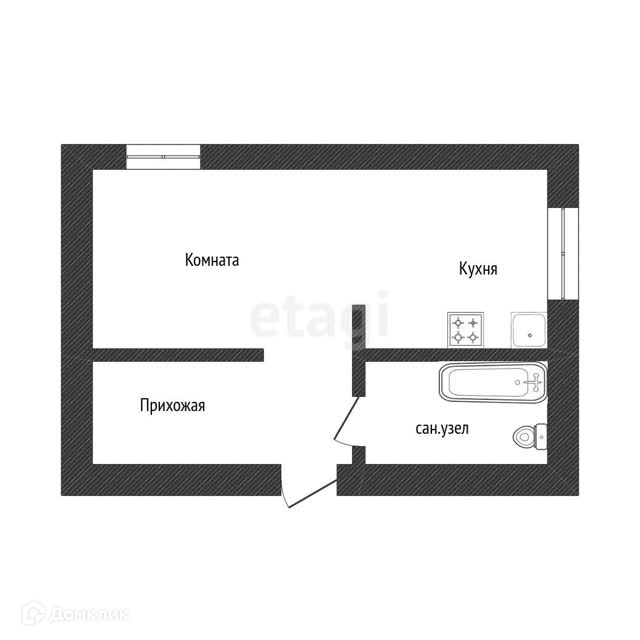 При продаже остаётся встроенный кухонный гарнитур.