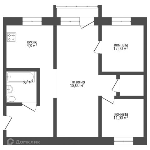 Общая площадь 57.7 м2