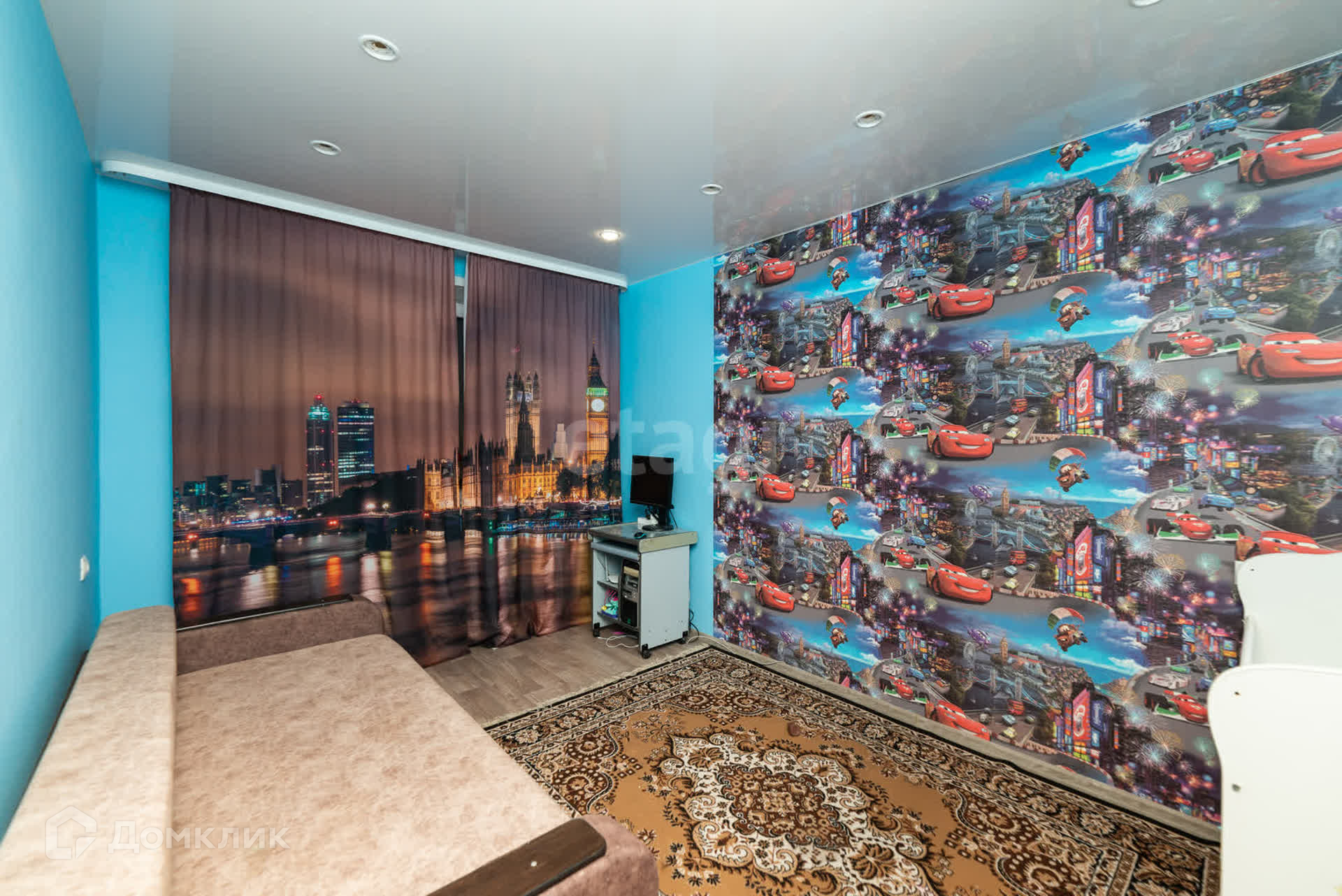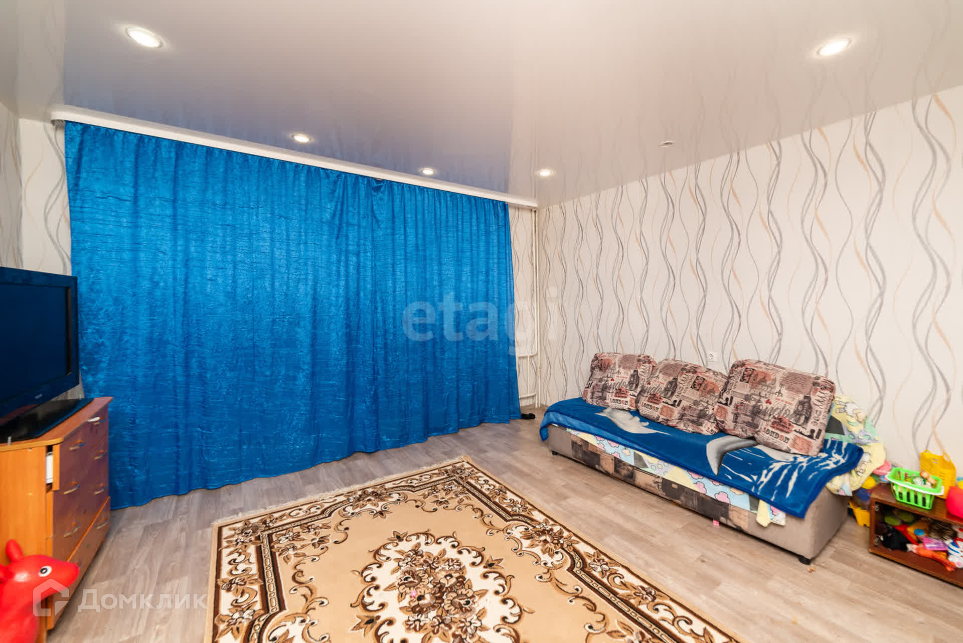 В квартире выполнен косметический ремонт, натяжные потолки, на полу линолеум.