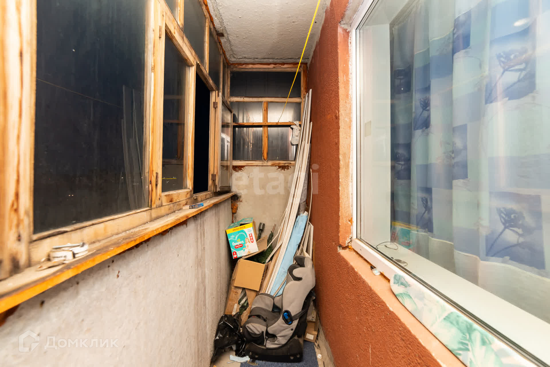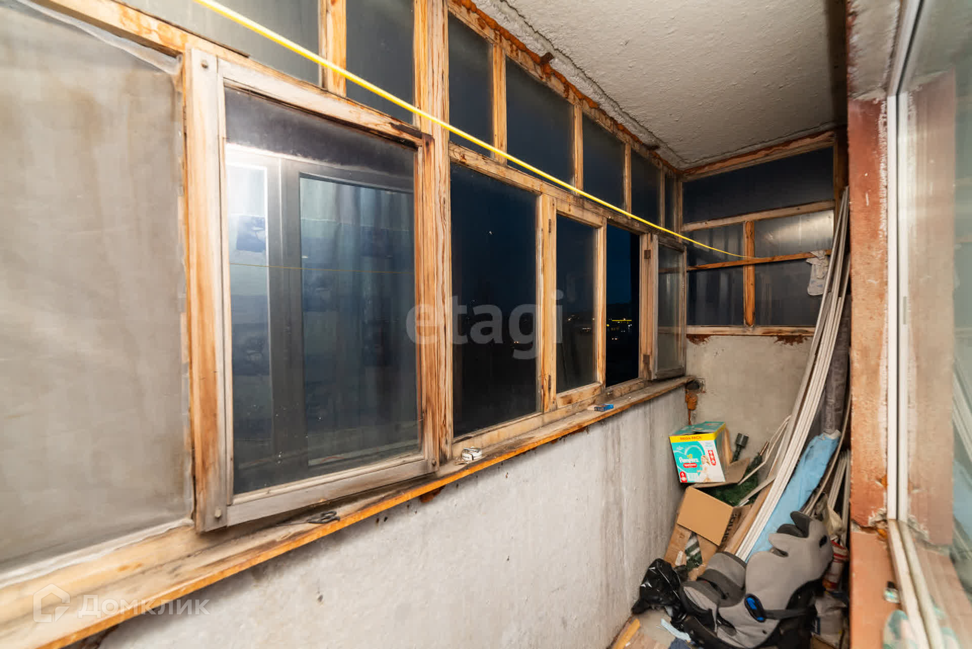 Окна ПВХ выходят на дорогу ул. Илизарова, балкон застеклен деревянной рамой.