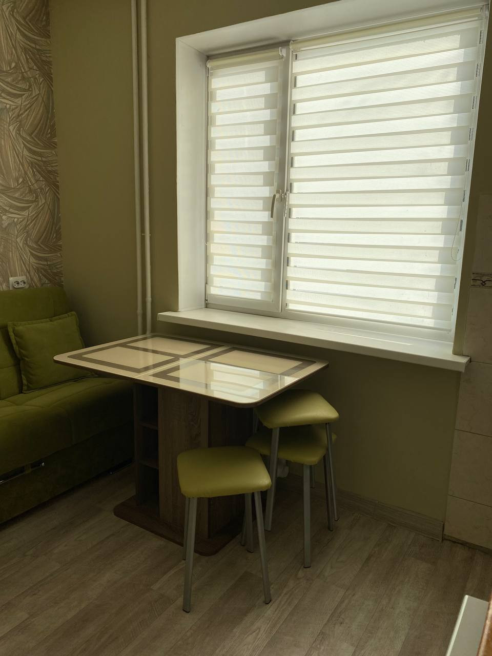 Комната 19 кв.м., кухня 9 кв.м. Санузел совмещенный 1,74 кв.м., плитка. Сантехника поменяна (металлопластик). Балкон застеклен, обшит вагонкой. В комнате постелен ламинат, кухня и коридор - линолеум.