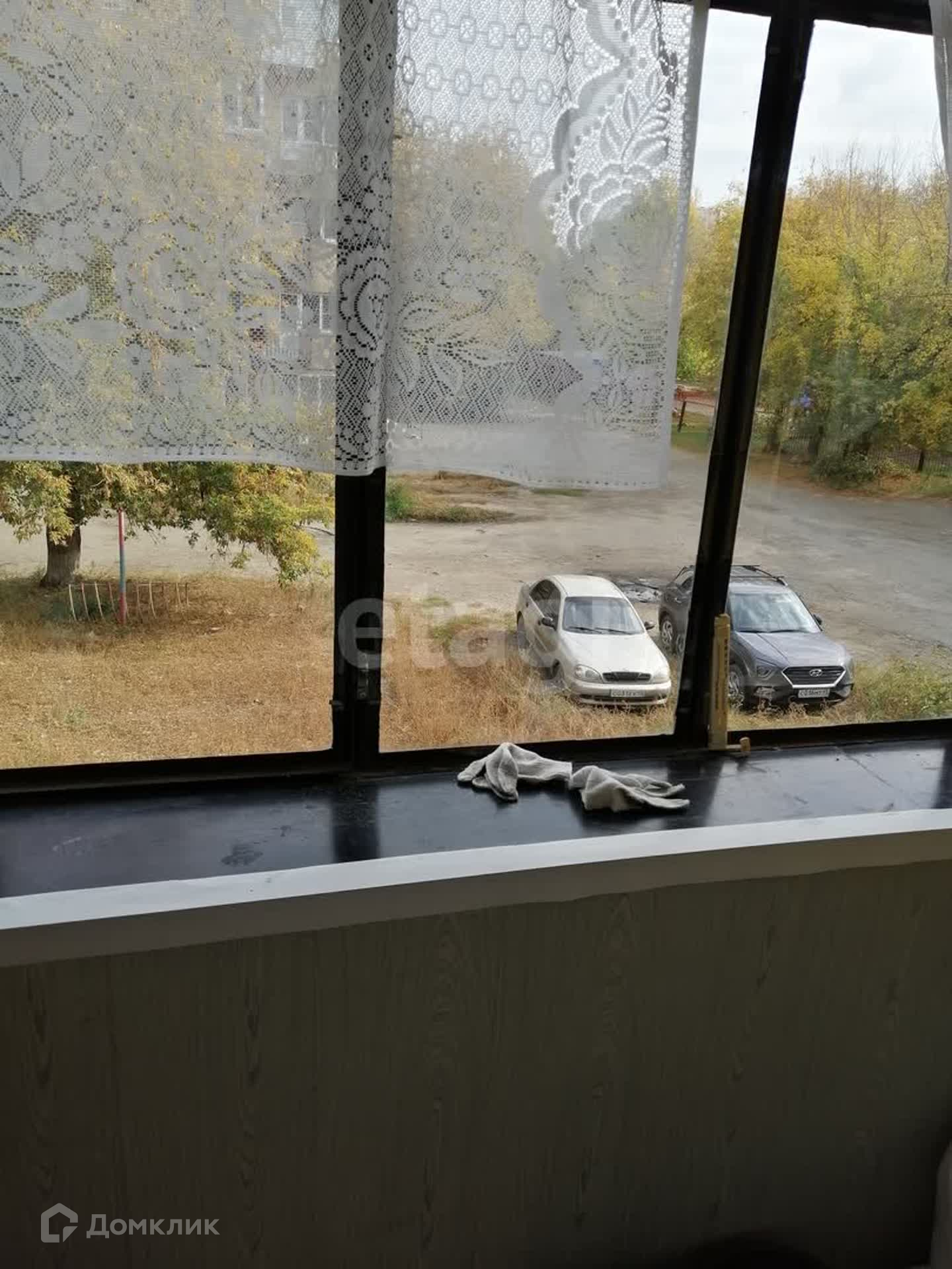 Окна выходят во двор, на детский сад.