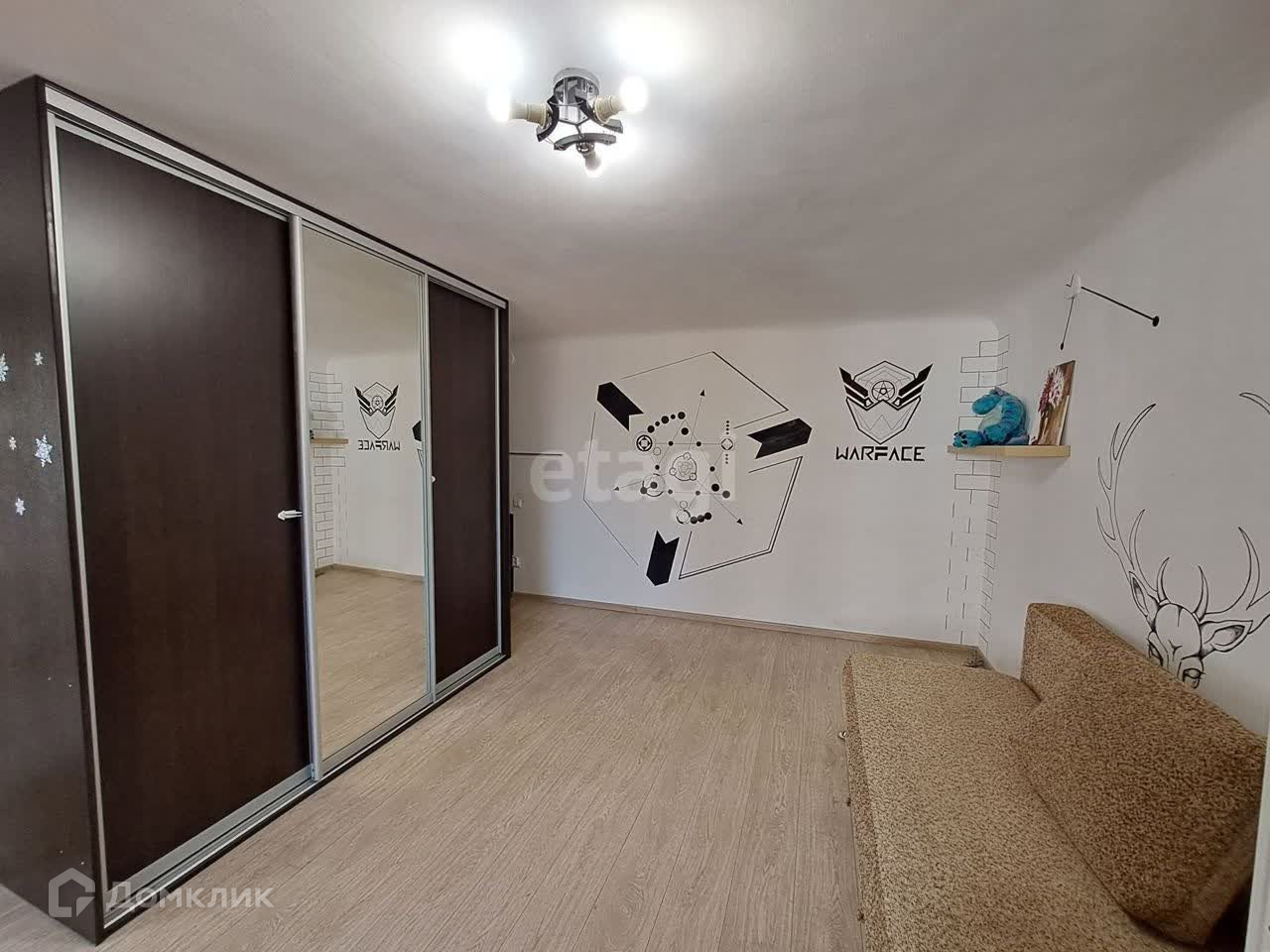- отштукатурены и покрашены стены, наклеена армированная сетка. Несмотря на наличие рисунков, стены можно спокойно перекрашивать;