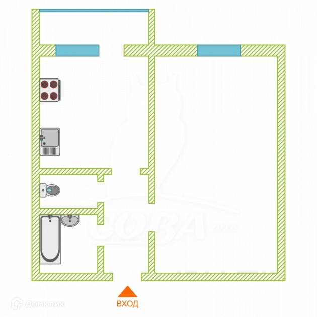 Общая площадь 32.8 м2