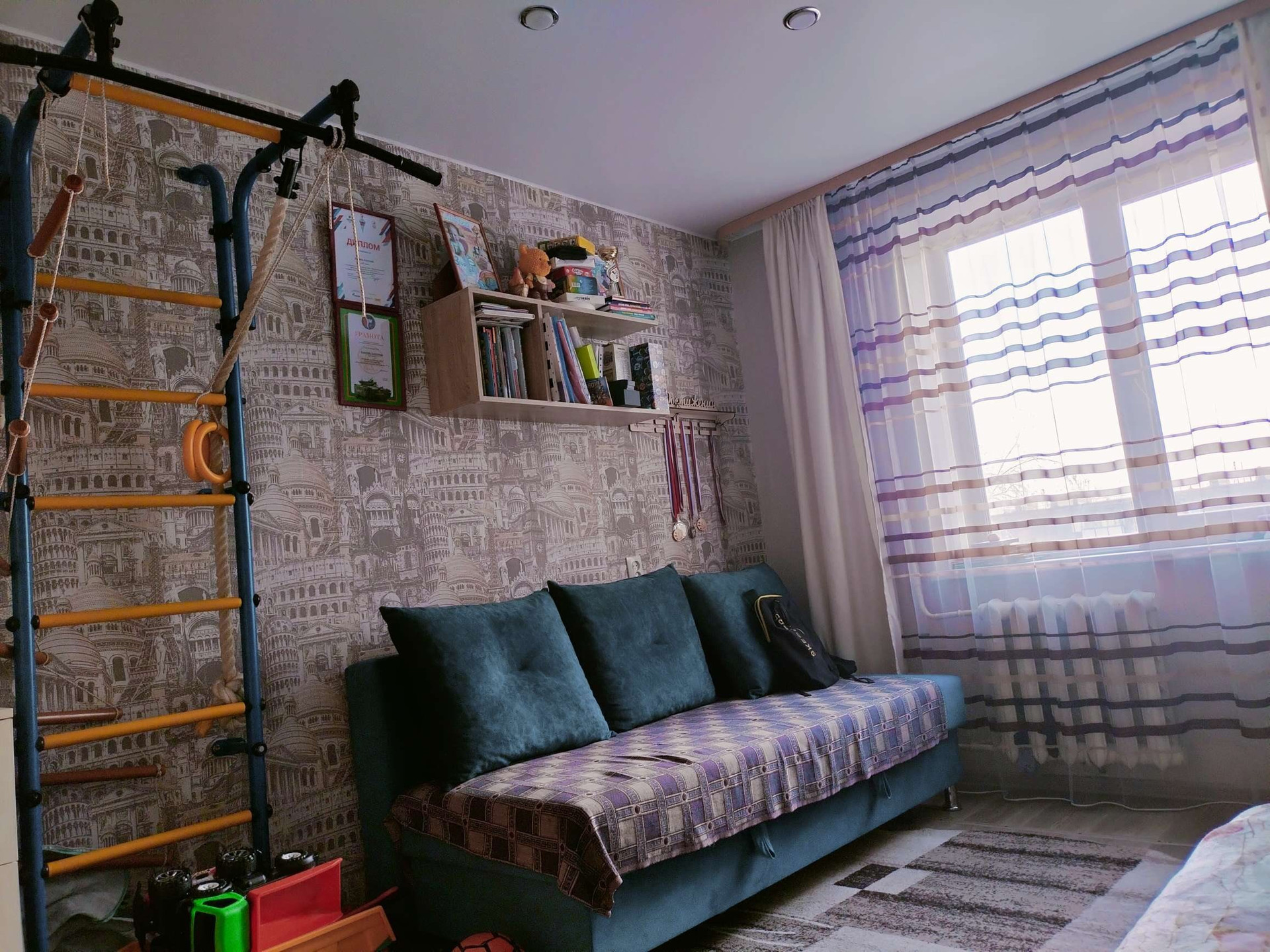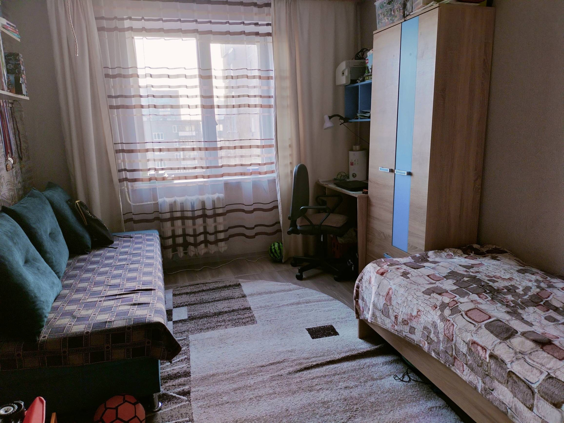 Квартира теплая,светлая, уютная, Солнечная сторона, окна выходят во двор. Везде стоят стеклопакеты, натяжные потолки по всей квартире. Мебель частично остаётся кухонный гарнитур, 2 шкафа купе в коридоре прихожая стенка под ТВ.  счётчики новые на гарантии. Соседи очень хорошие, в ноябре 2023 году сделан ремонт подъезда. Район тихий спокойный, детская площадка оборудована. В шаговой доступности магазины, школы (9 школа) детский сад (журавушка 103)