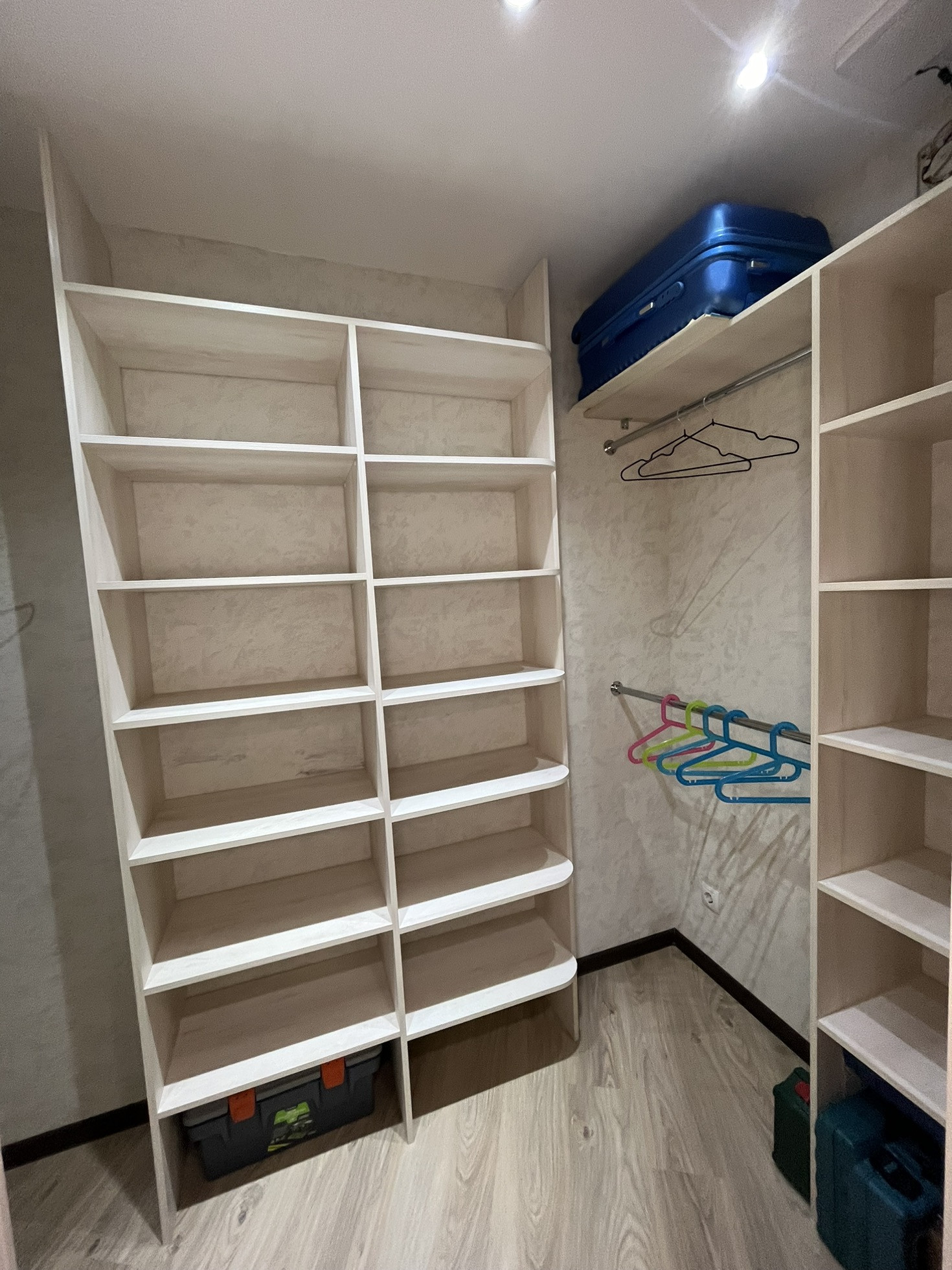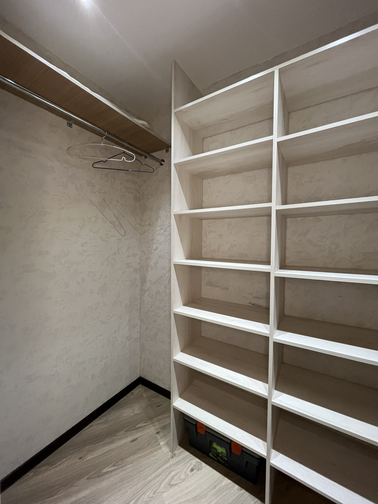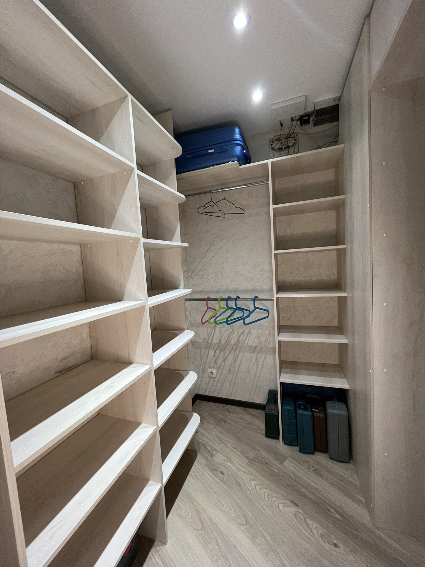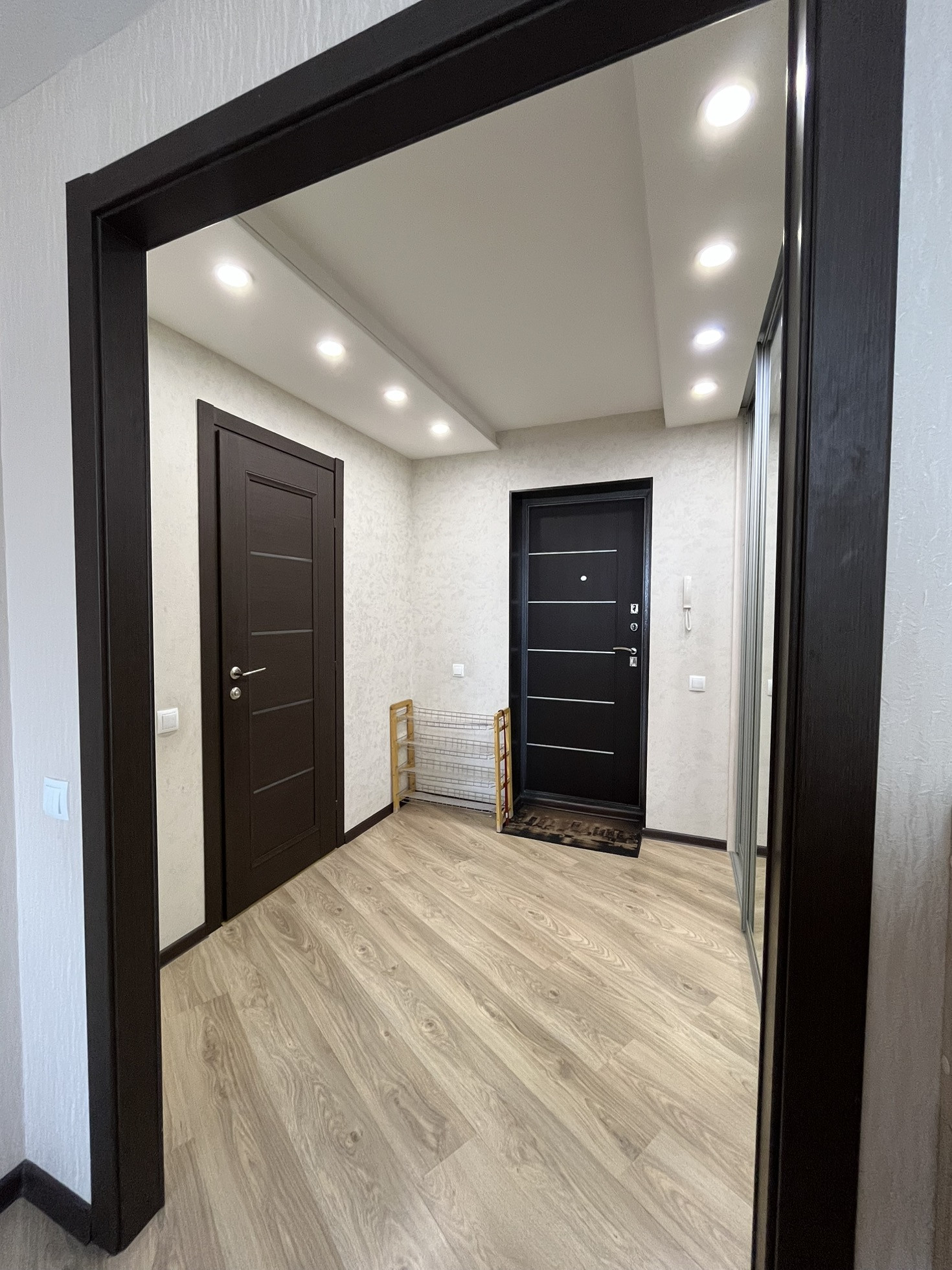 В квартире остаются кухня, газовая панель Gorenje, электрический духовой шкаф Beko, вытяжка, рабочая зона + шкаф в детской, гардеробная, кондиционер, водонагреватель.