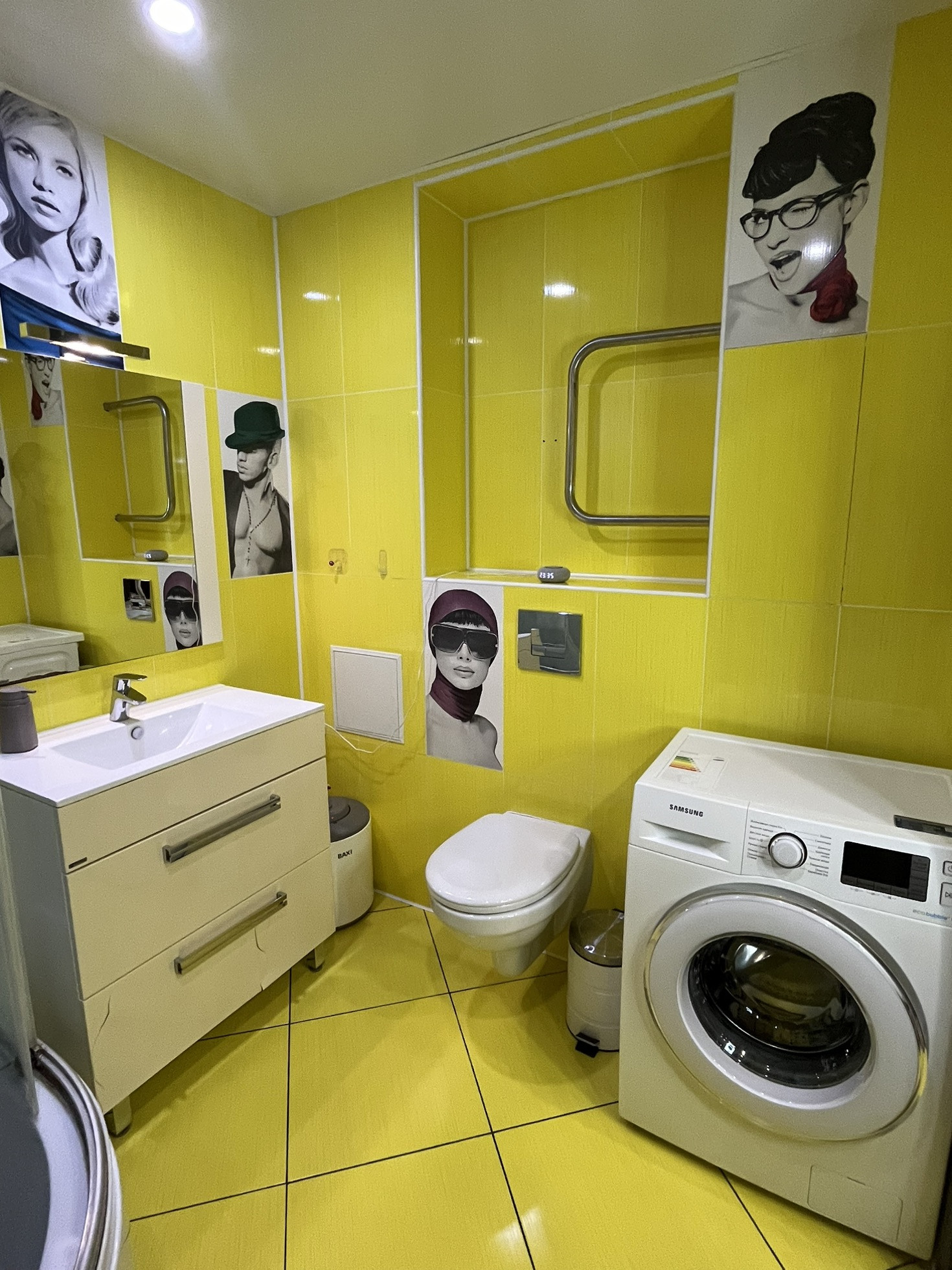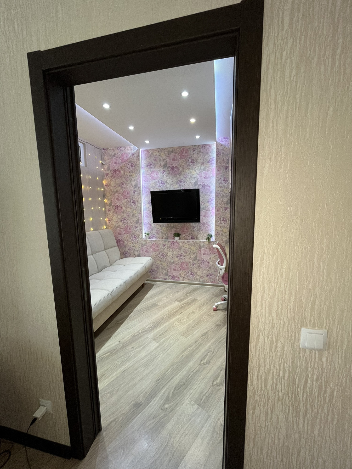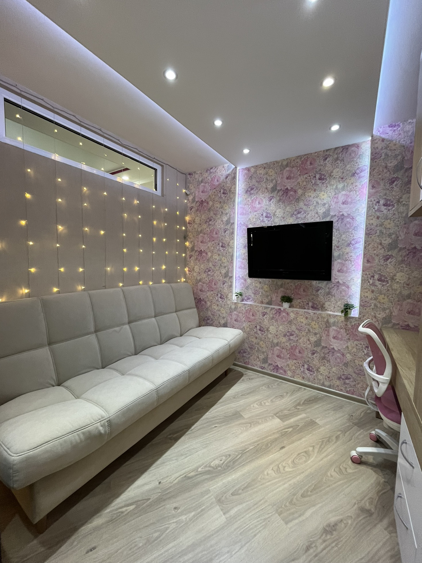 Обои моющиеся во всей квартире. На полу ламинат. На кухне плитка ПВХ( СУПЕРВЕЩЬ!тёплая для босых ног, бесшумная и антивандальная). В ванной кафель. В кухне и ванной комнате имеется тёплый пол.