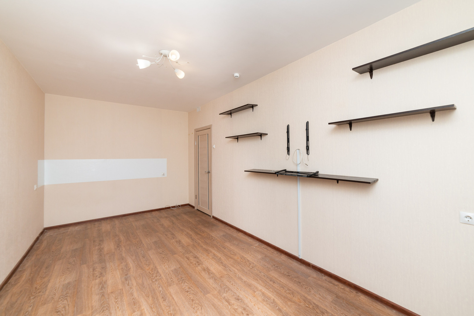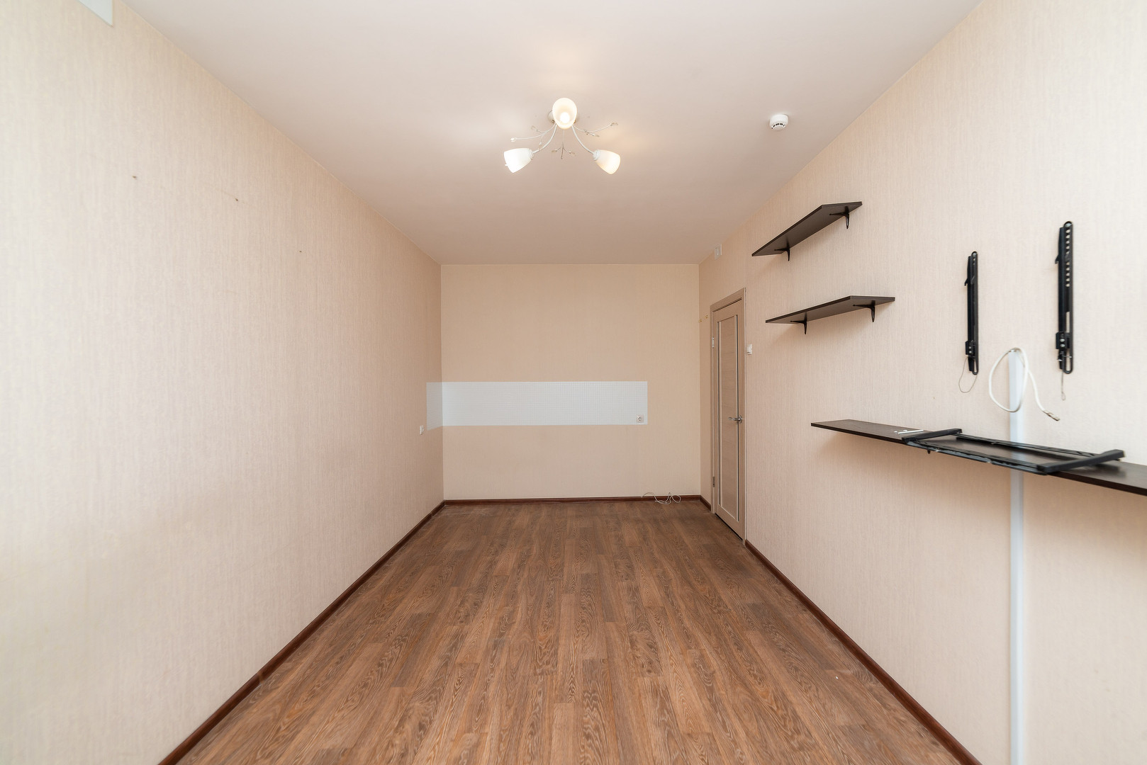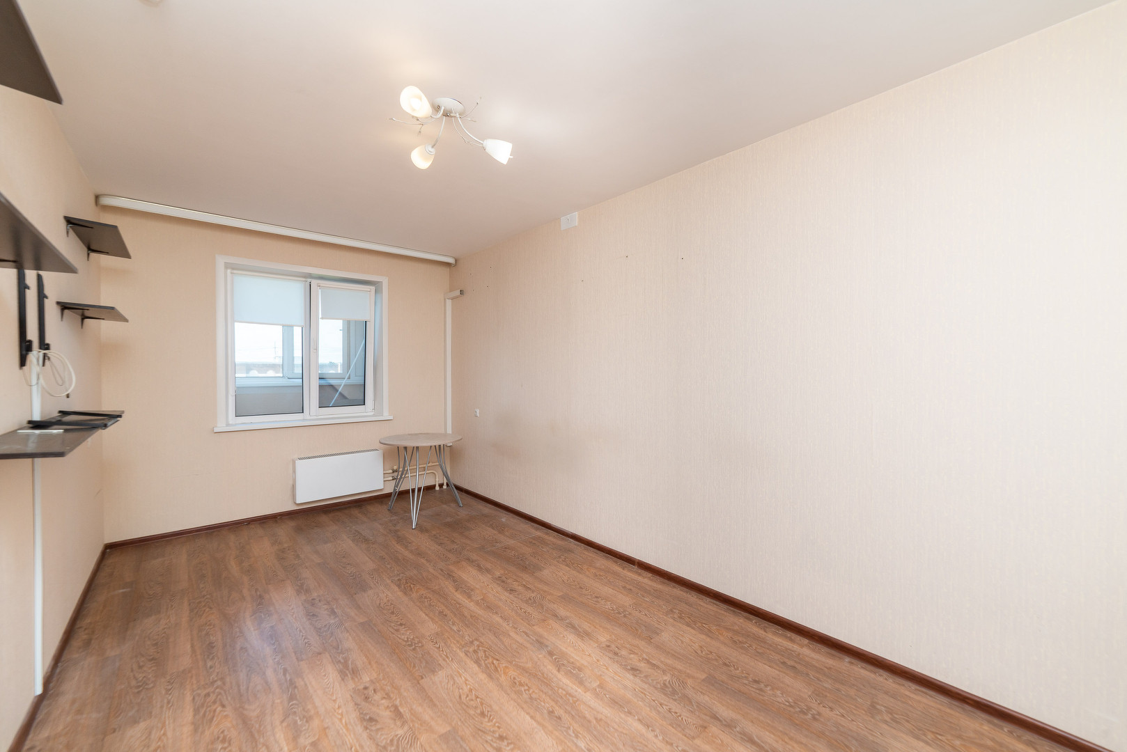 Обои в теплых и светлых тонах. На полу линолеум отличного качества.