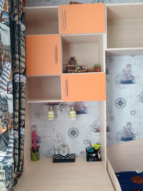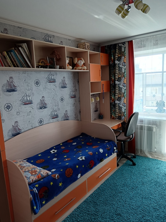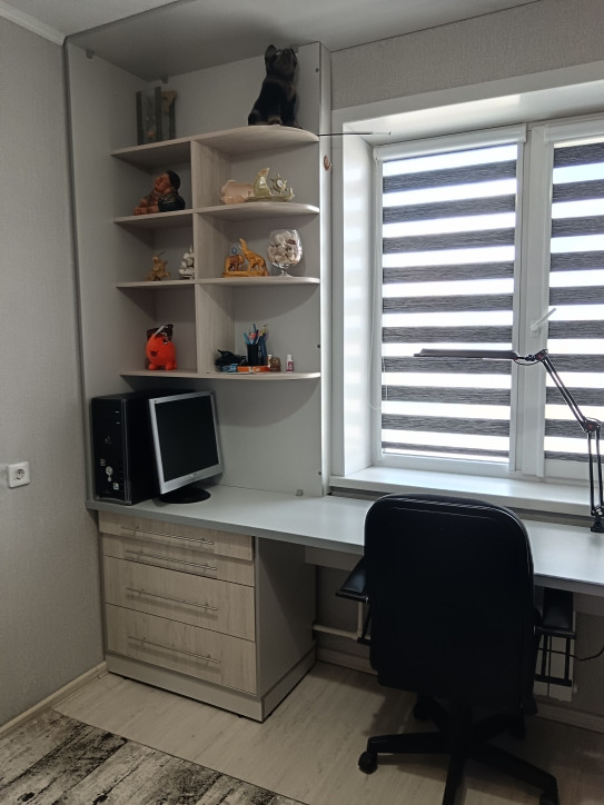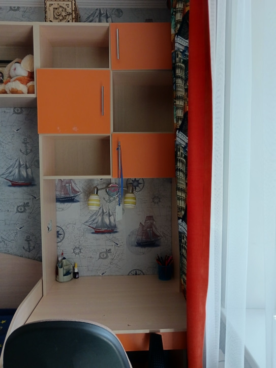 3. Комната, идеальна для подростка: встроенная мебель вся. На полу ламинат, потолок обои под покраску.