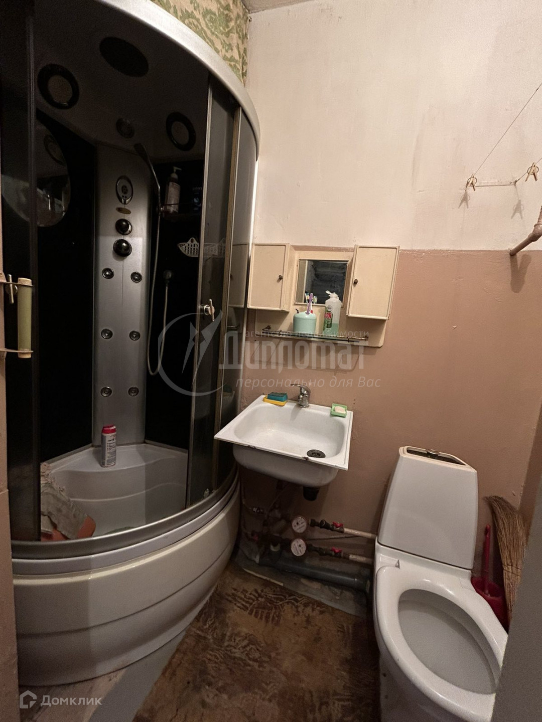 Санузел совмещен – душевая кабина, трубы пластик.