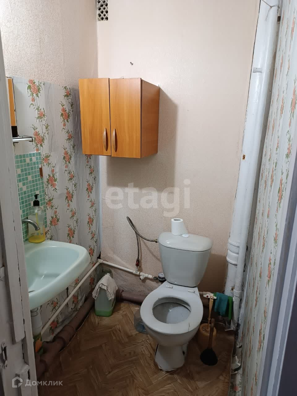 В квартире раздельный санузел, на полу линолеум, в санузле плитка.