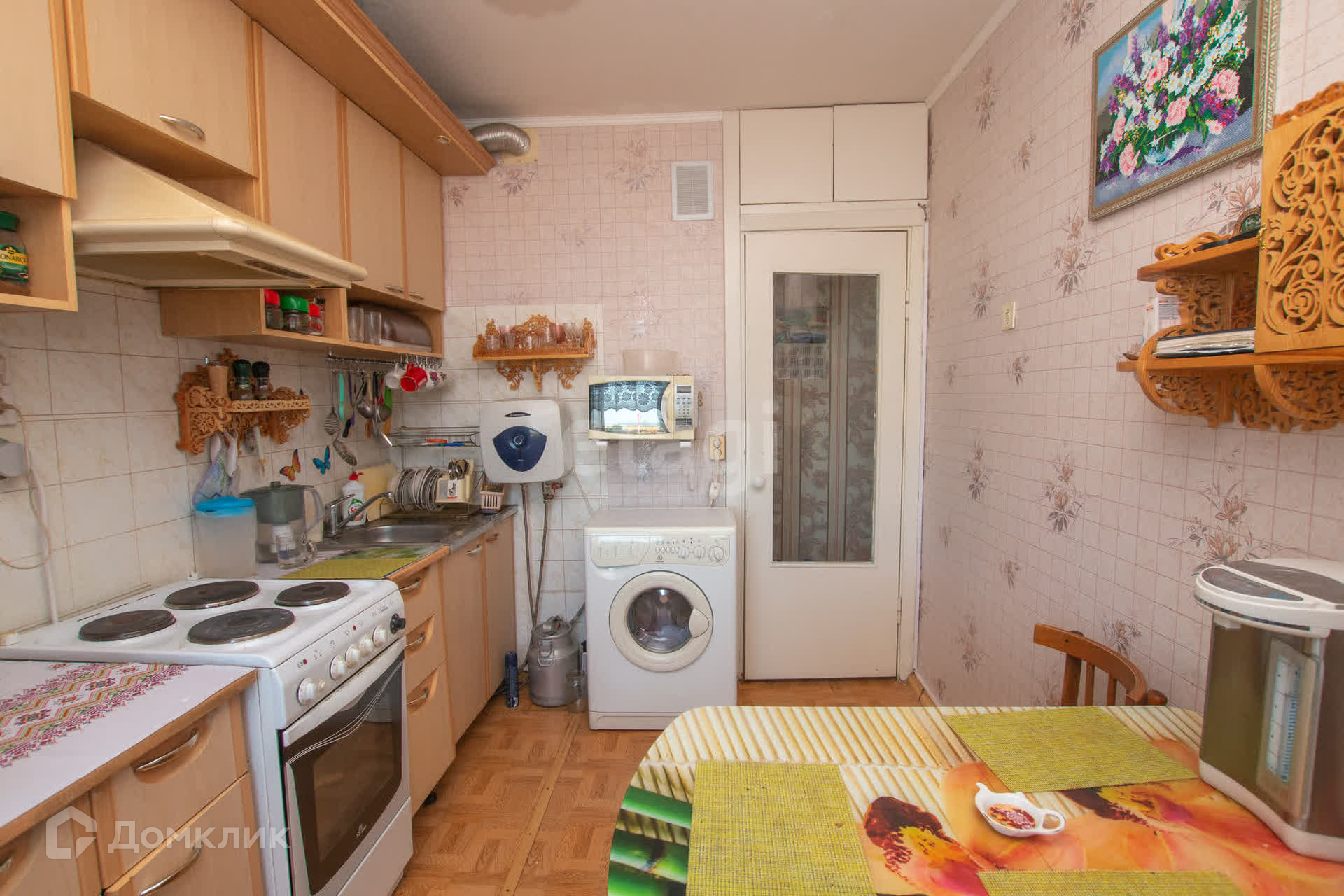 На кухне установлена электрическая плита, что делает процесс приготовления пищи удобным и безопасным.