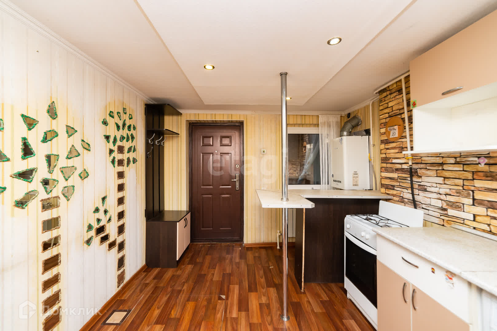 Планировка: просторная прихожая, большая кухня, комната и совмещенный санузел с душевой кабиной.