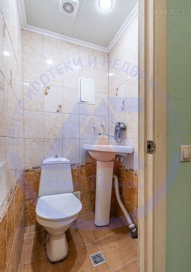 • Потолки: натяжные, в санузле — пластиковая плитка.