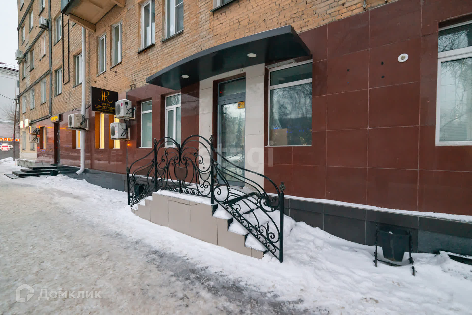Помещение обладает двумя отдельными выходами: парадный - двустороннее крыльцо с ажурными перилами со стороны проезжей улицы и второй выход во двор жилого дома, с удобными подъездными возможностями.