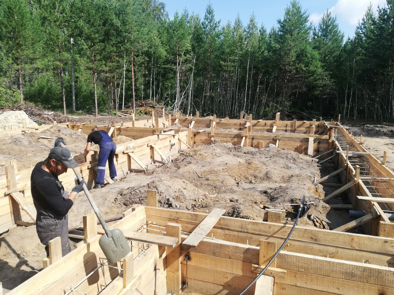 Продам земельный участок 14 соток под строительство дома, на участке залит фундамент под двухэтажный дом 15,2*13,8 м и гараж 10,4*5 м, так же на участке расположено металлическое бытовое помещение для строителей, подключена электроэнергия, газ проходит по улице, скважина, участок огорожен забором из профлиста кроме лицевой стороны.
