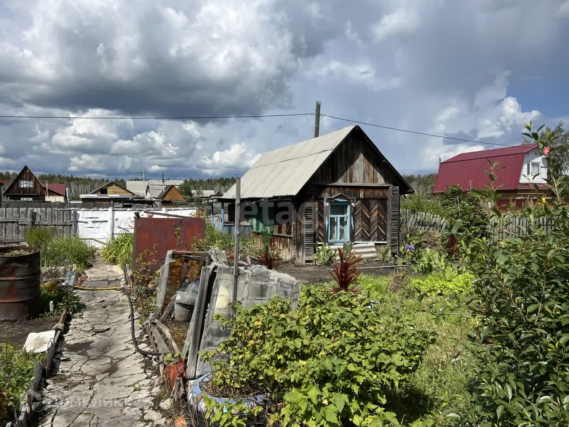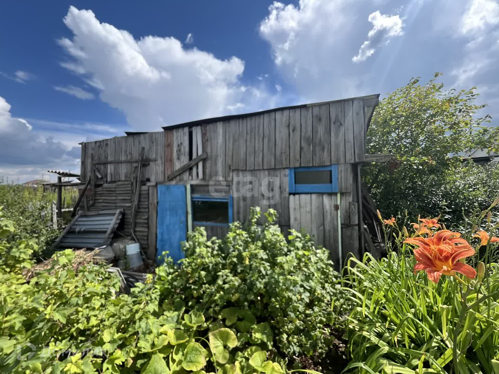 На участке небольшой дом где можно отдохнуть и хранить вещи.