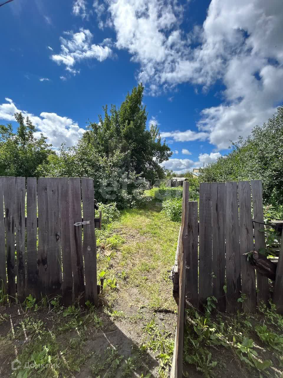Участок огорожен деревянным забором.