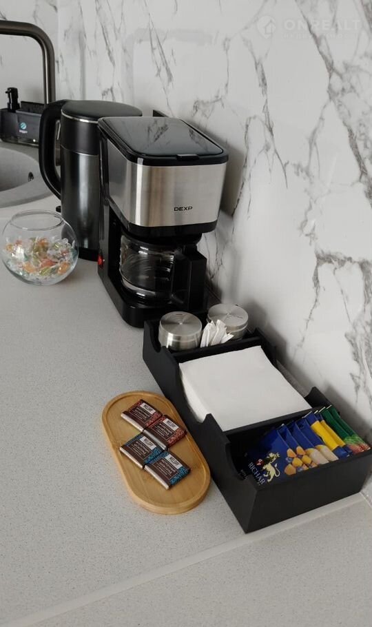☔ А так же приятные мелочи в виде зонта, губки для обуви, липкого ролика для одежды, швейного набора, конфет в вазе, шоколада, макарон, крупы, хлопьев для завтрака, вкусного растворимого кофе, а также кофе для варки, чая в пакетиках и для заваривания в чайнике.
