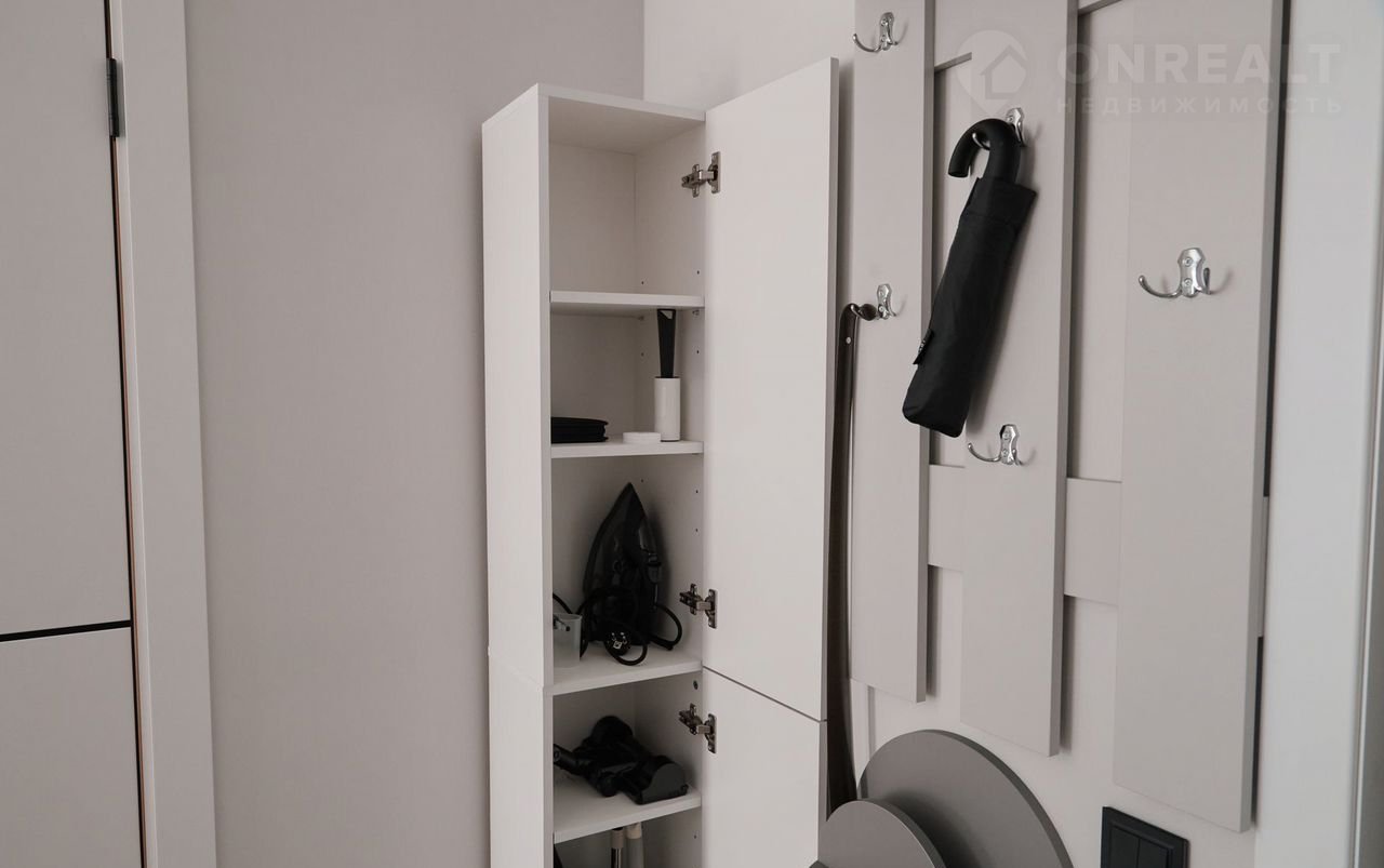 Для размещения своих вещей и чемоданов есть вместительный шкаф с плечиками и полками, ключница с полочкой для телефона и документов, а так же есть зеркало где вы можете полюбоваться собой перед выходом.