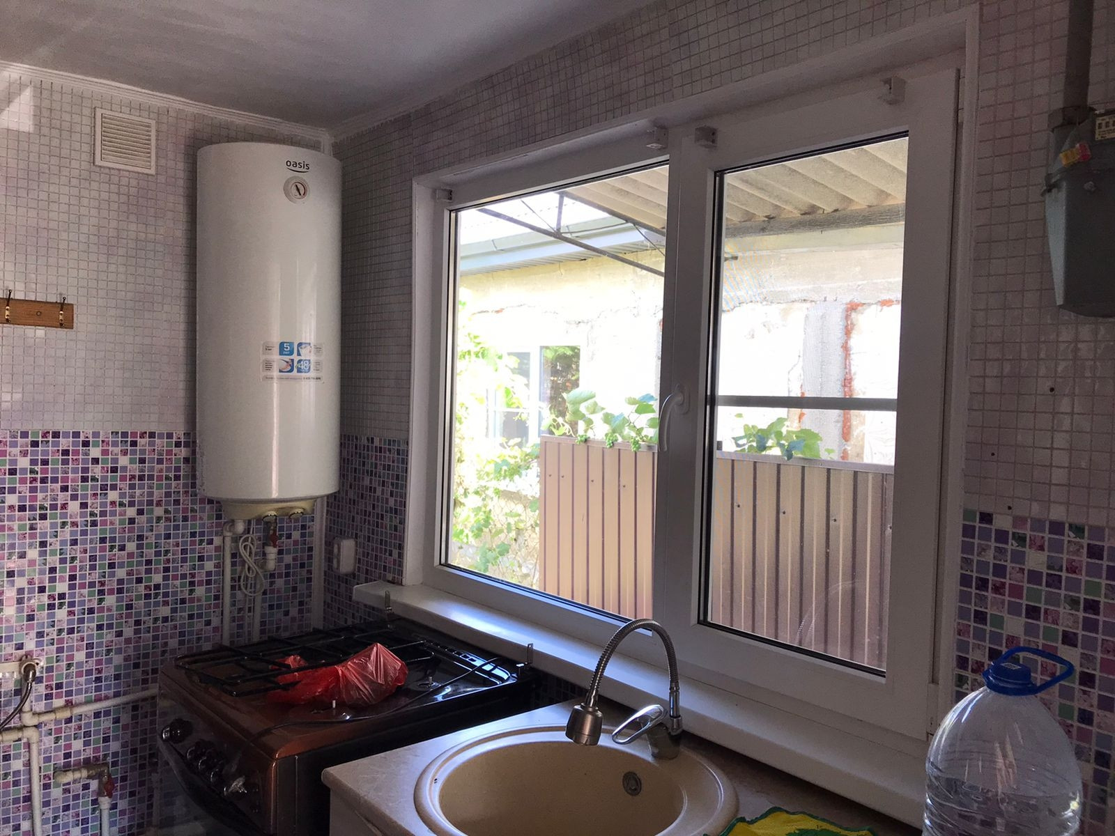 Продам дом в г. Курганинске (район ул. Крупской) с общей площадью 51 кв. м. В доме сделан евро ремонт, стоят пластиковые окна, есть газ, горячая холодная вода, канализация. Забита своя скважина. Проведена новая проводка. В доме 4 жилых комнаты. Две спальни, просторный зал, столовая и кухня в пристройке. Туалет расположен на улице. Во дворе есть навес, двор забетонирован. Имеется виноградник и молодой сад в конце огорода. На участке находится большое подсобное помещение.