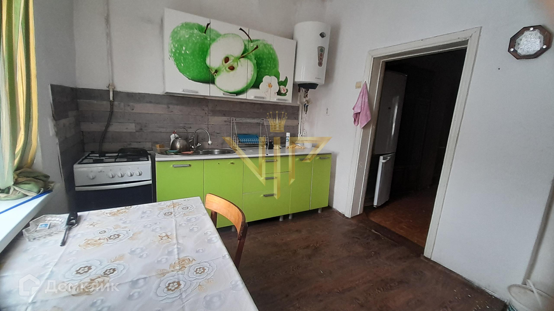 В доме три комнаты, кухня, коридор, ванная комната. Высокий цоколь, потолки высотой 3 метра.