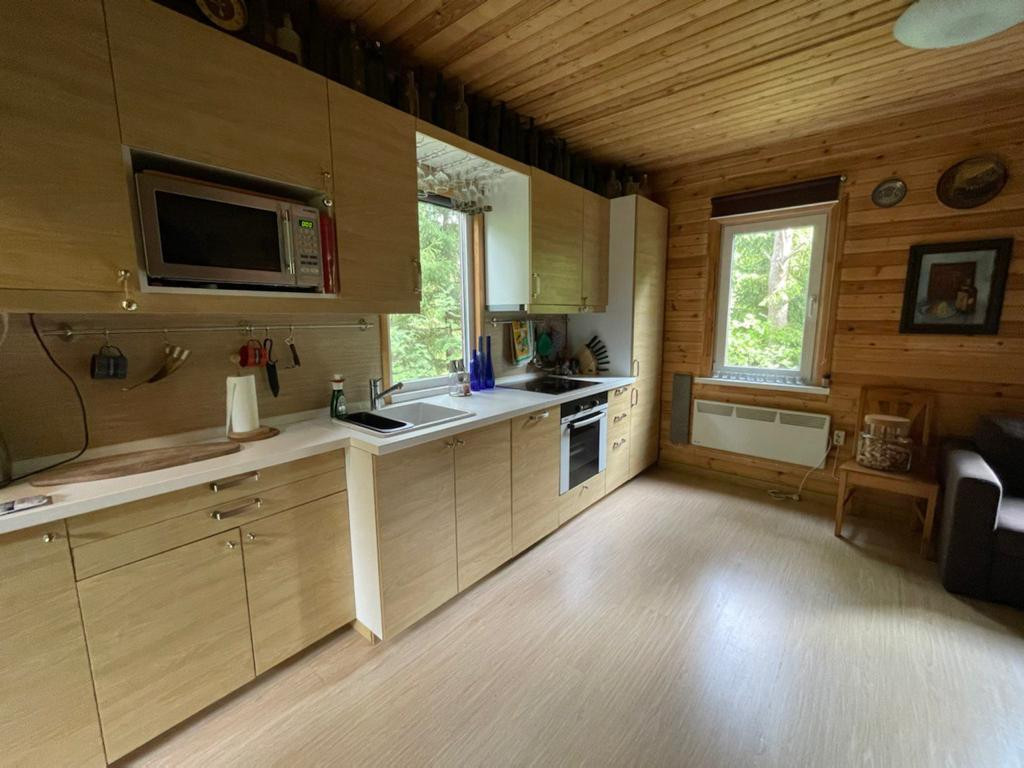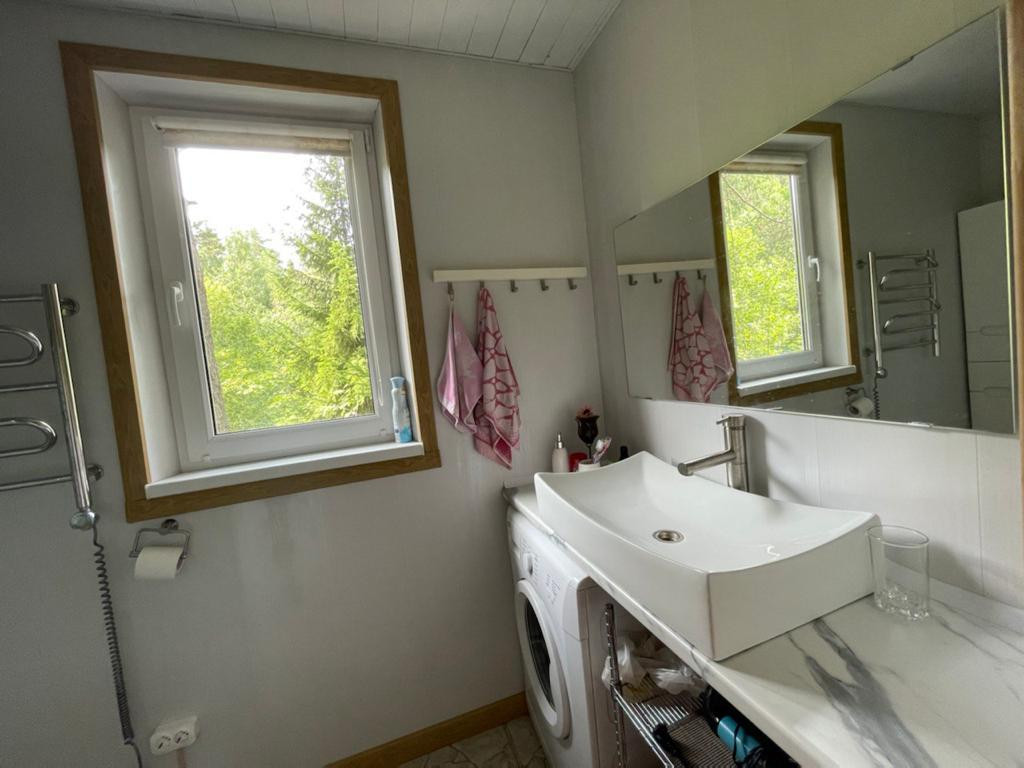 Уютный дом в сердце Южной Карелии в 2 часах езды от Санкт-Петербурга для круглогодичного проживания. Теплый, закрытый от посторонних глаз в 120 метрах от берега Ладожского озера, залив Хяменлахти. Дом стоит на скальном основании. Дом подключён к локальной канализации, к электричеству. Подключён к центральному (городскому) водоснабжению. Кухня IKEA со всей необходимой встроенной бытовой техникой: холодильник, индукционная плита, духовой шкаф, микроволновая печь, мойка, посудомоечная машина и т. п. . Оборудован современный туалет с подогреваемым полом, с вентиляцией, душевой кабиной, полотенцесушилом, стиральной машиной. В доме имеется печь и камин. Есть Wi-Fi. От СПб трасса А121 на Сортавала. Вся дорога к дому асфальтирована, кроме последних 1200 метров проходящих через сказочный лес, лесная дорога гравийная, зимой очищается. В 2018 году дом переоборудован и подготовлен для круглогодичного проживания. (См. видео).