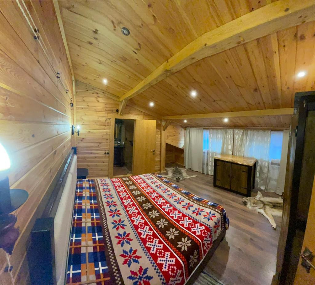 3 этаж - большая комната с двухспальной кроватью и со своим туалетом и душем