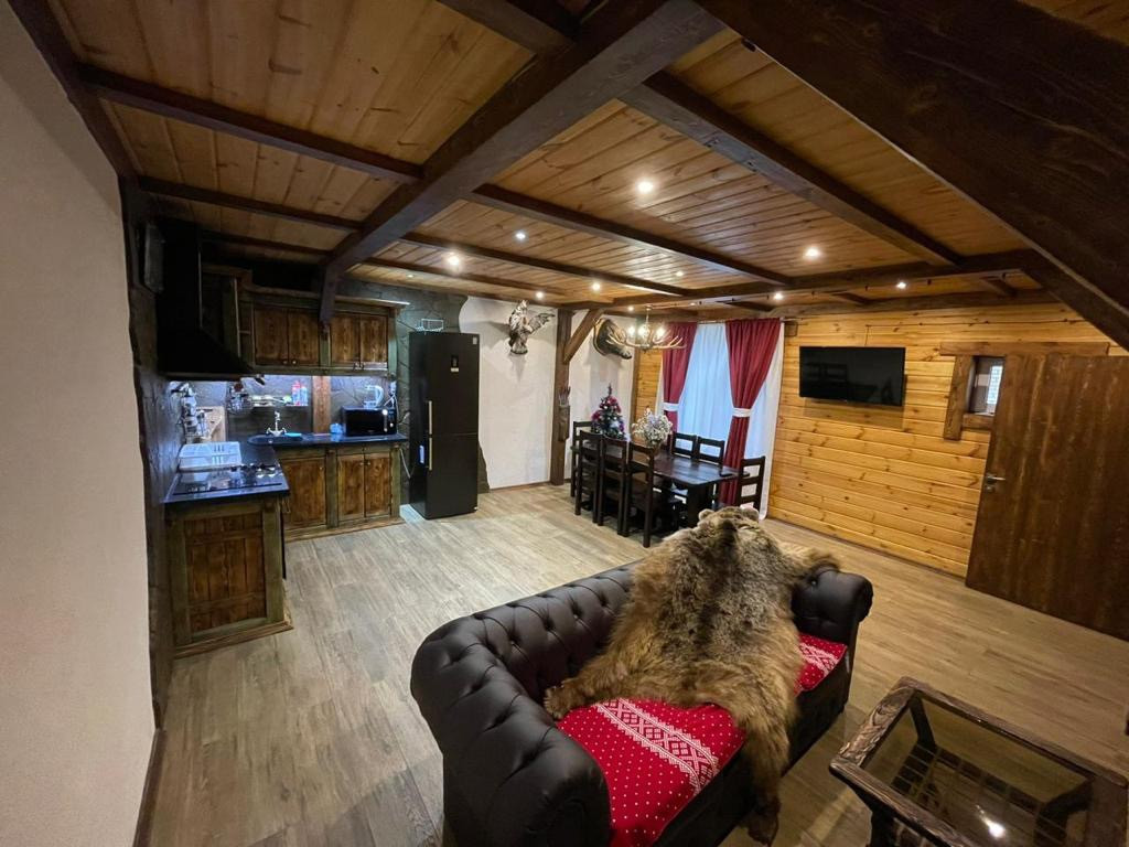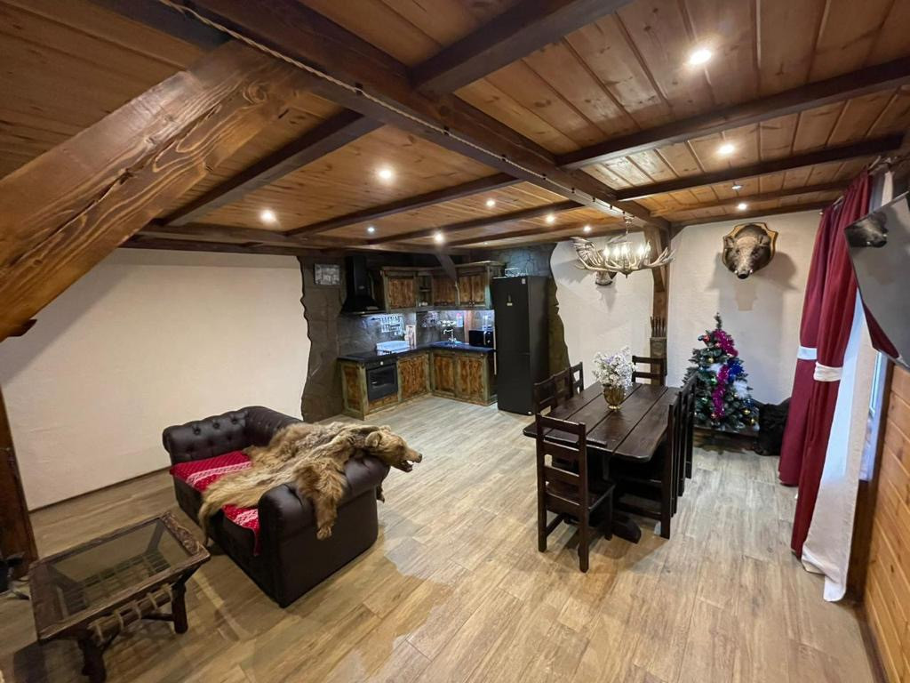 1 этаж - зал-гостинная с большим кухонным столом и кухней, камин действующий