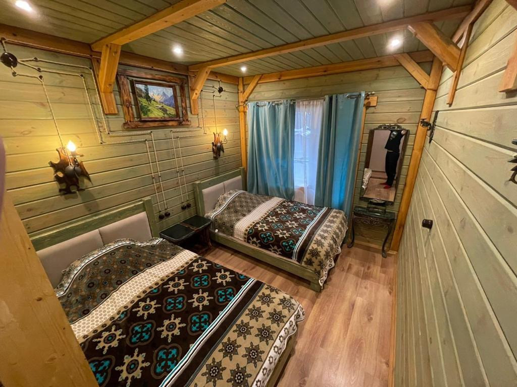 2 этаж - спальня с двухспальной кроватью + выход на балкон и еще одна комната с двумя 1.5 спальними кроватями+выход на балкон и рядом на этаже расположен сан.узел с душем и туалетом
