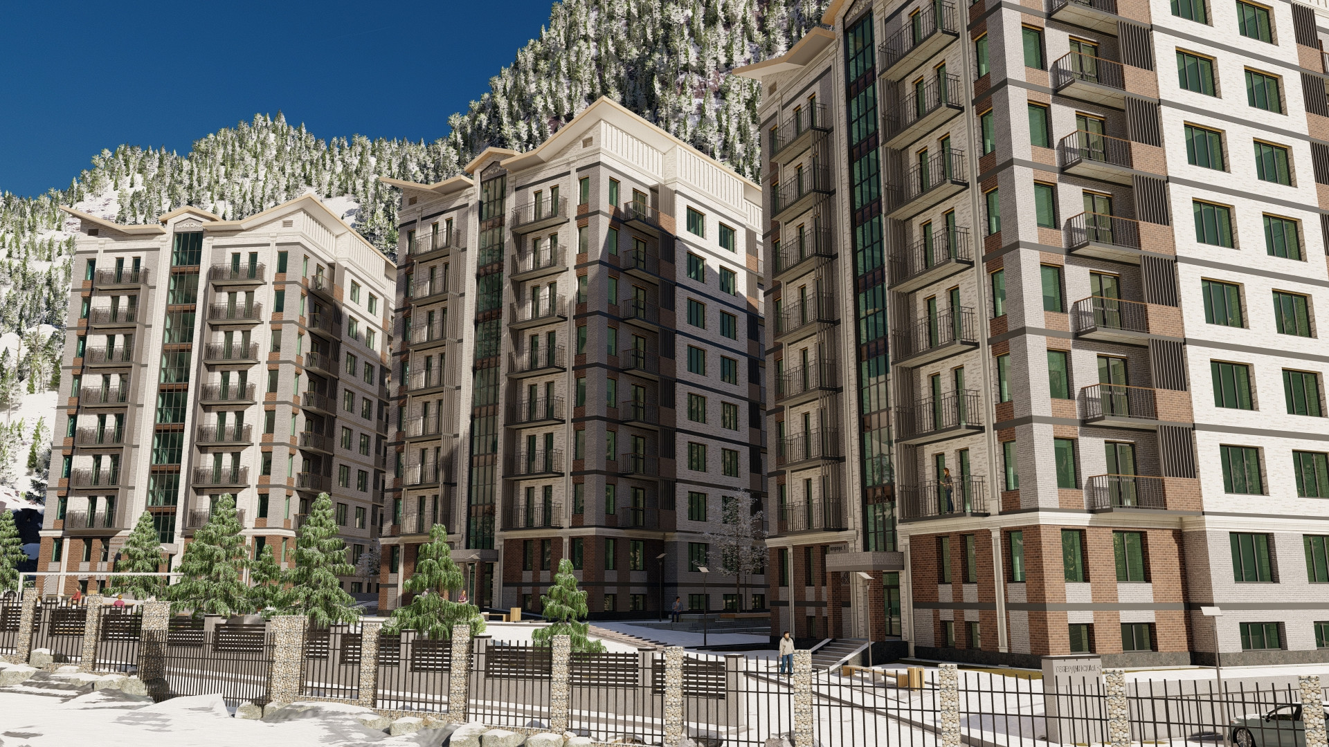 ООО "СЗ"Фотон-Инвест" приглашает вас приобрести квартиру в ЖК "Сердце горы" в курортном поселке Домбай. Этот уникальный проект представляет собой три многоквартирных дома, каждый из которых имеет 9 этажей, тех.мансарду и цокольный этаж. Общее количество квартир - 108.
