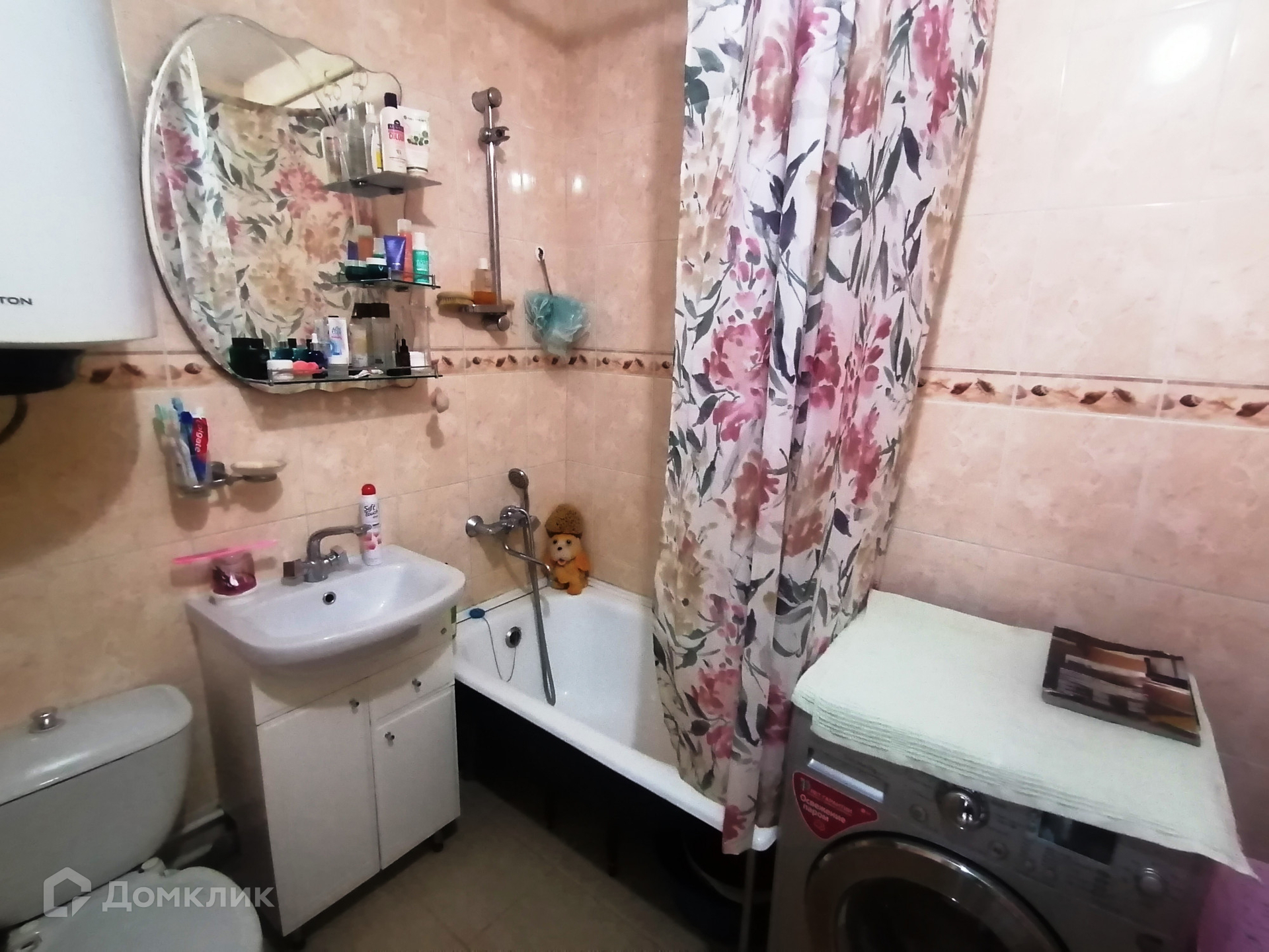 Ванная - стиральная машина, бойлер на 100 литров, шкаф под раковину, зеркало.