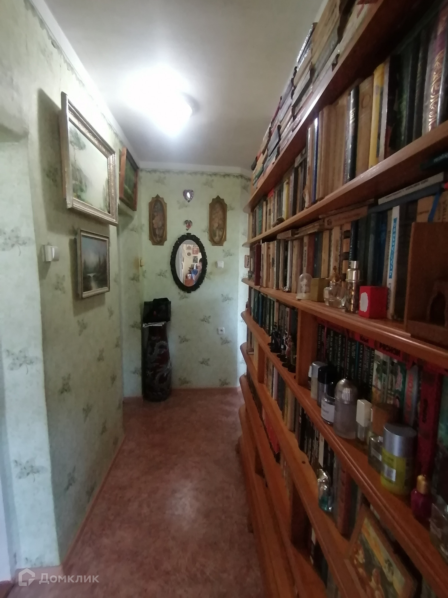 Прихожая - деревянный шкаф, сделанный по индивидуальному проекту, напольный кондиционер, книжный шкаф.