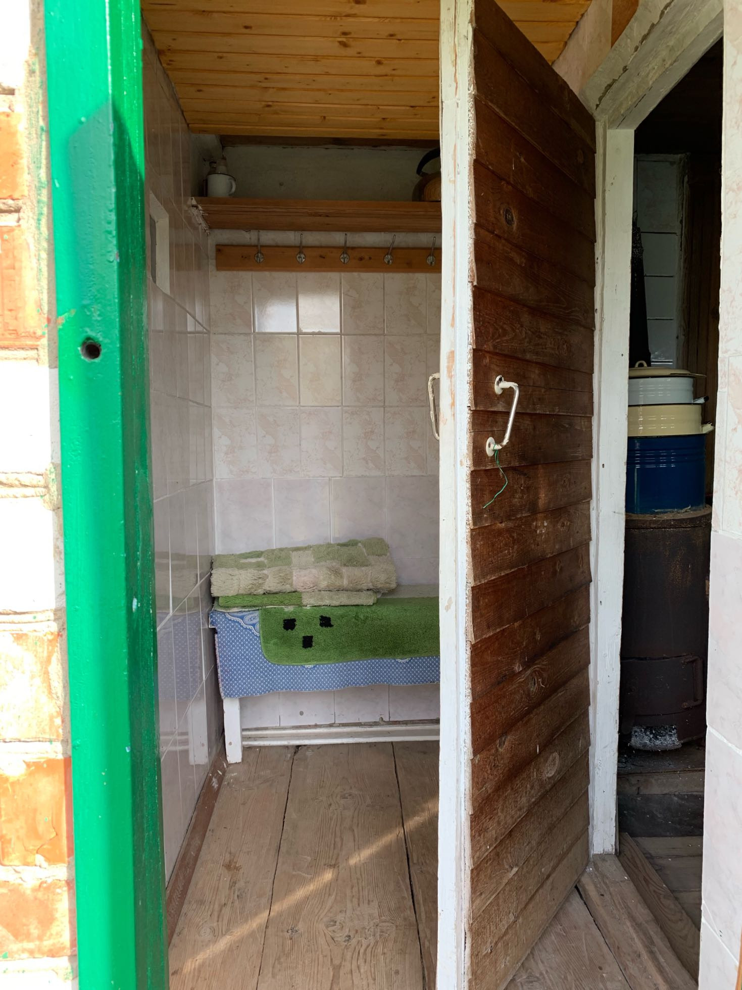 К дому пристроены: туалет (есть септик) и подсобное помещение в котором можно установить котел(раньше был на баллоном газе, убрали за ненадобностью, дом теплый. Баллоны можем оставить. Батареи по всему дому). Также к дому пристроена кр