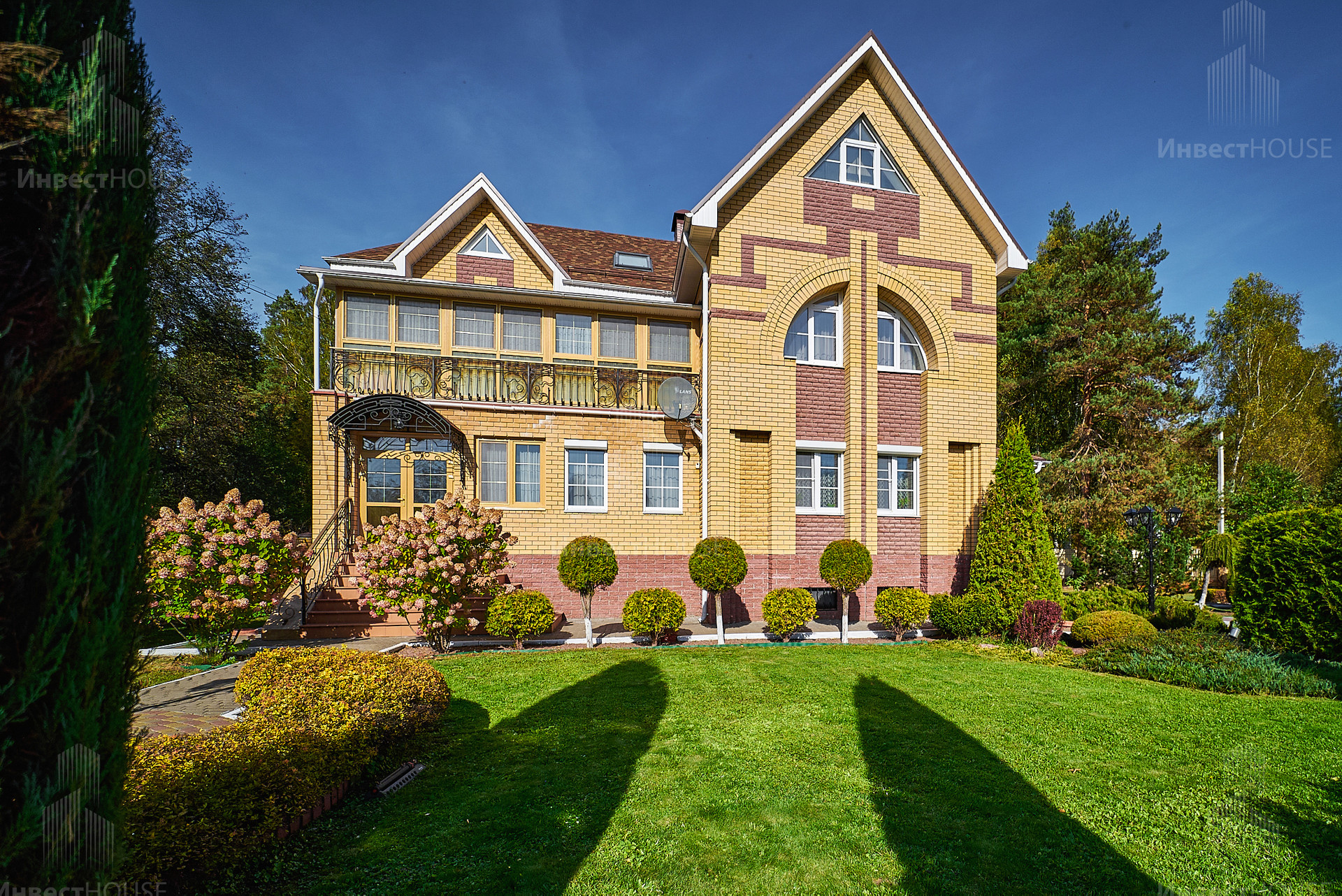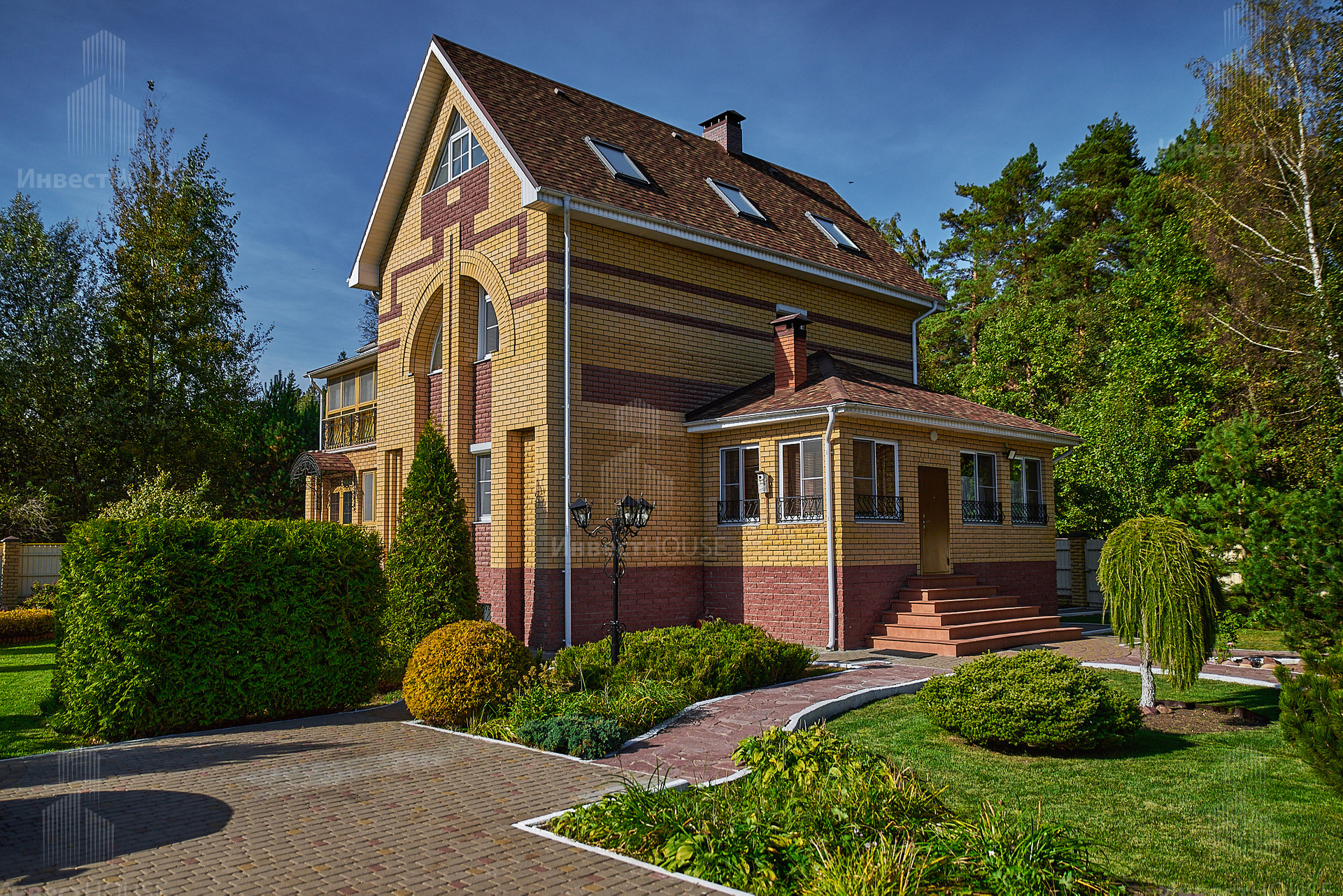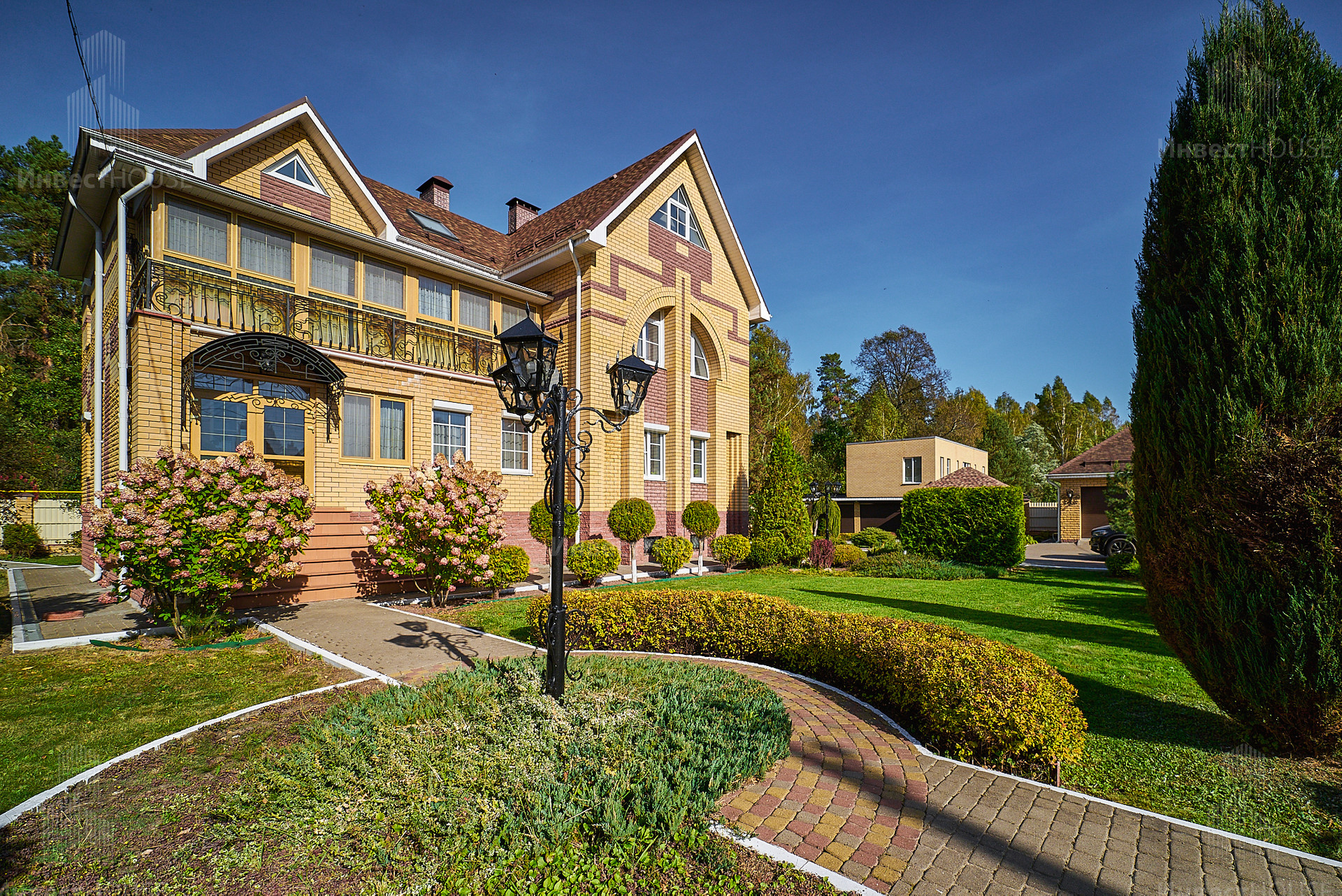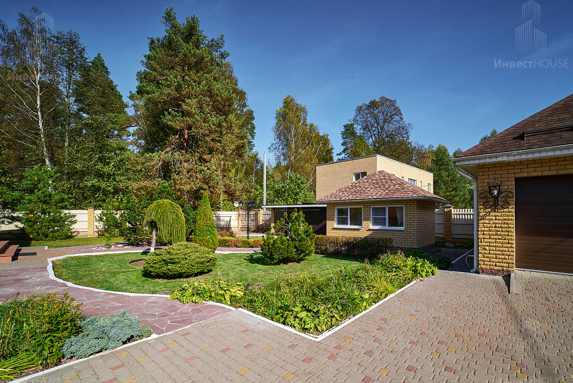 Коттедж с идеальным ландшафтным дизайном, где размещаются: