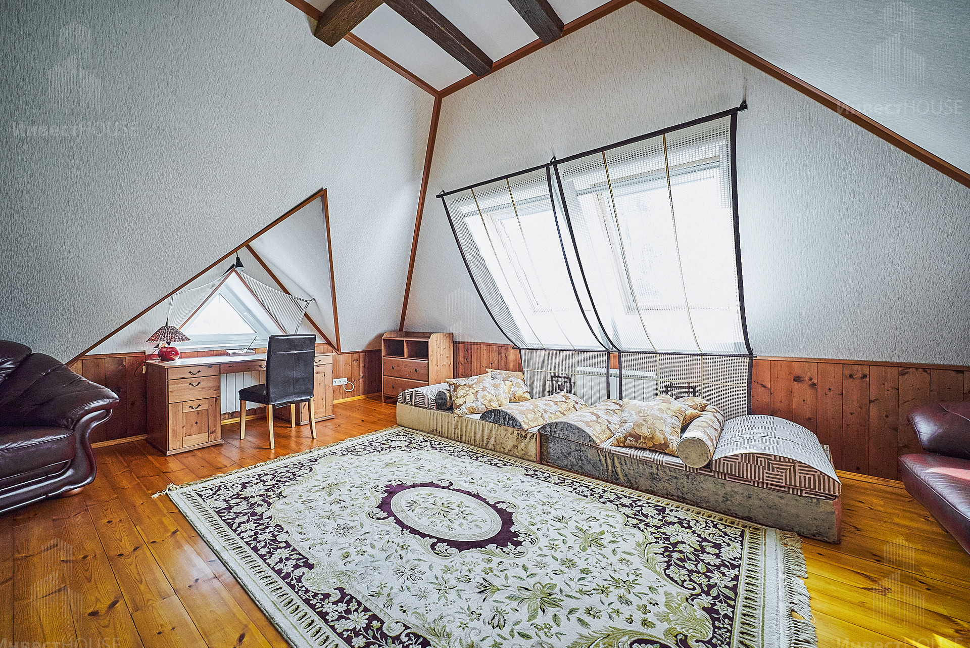 Имеется собственный выход в лес, гуляя по которому Вы оцените красоту природы и насладитесь уединением от городской суеты.