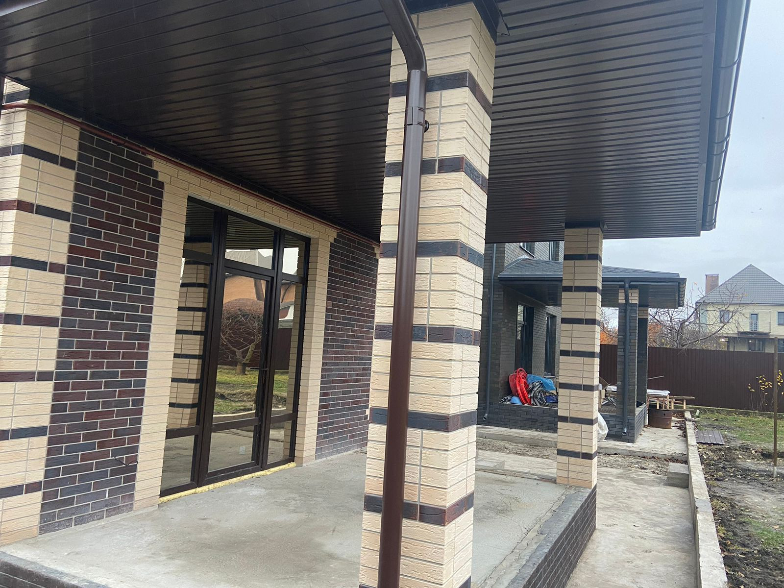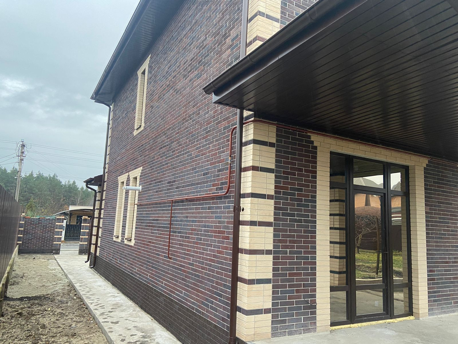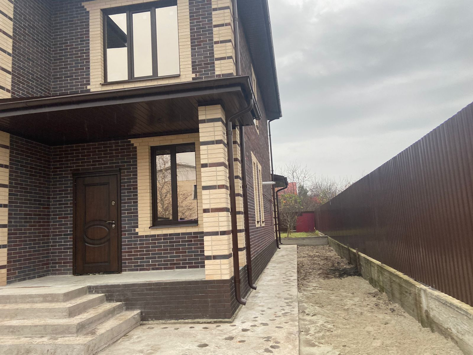 Продается новый двухэтажный дом 179,2 кв.м. на земельном участке 5 соток. Материал стен пеноблок, облицовочный керамический кирпич, фундамент ленточный. Мягкая кровля, утеплитель 150мм, водосточная система. Выполнена отмостка вокруг дома, бетонные: площадка под парковку, дорожка от крыльца до калитки. По периметру участка установлен забор из профлиста. По фасаду: кирпичные колонны, профлист, ворота откатные, калитка.  Все коммуникации подведены (газ, электричество, водоснабжение). Выполнена чистовая отделка стен (гипсовая штукатурка), механизированная стяжка пола, теплые полы на 1 этаже.  Установлен газовый двухконтурный котел.