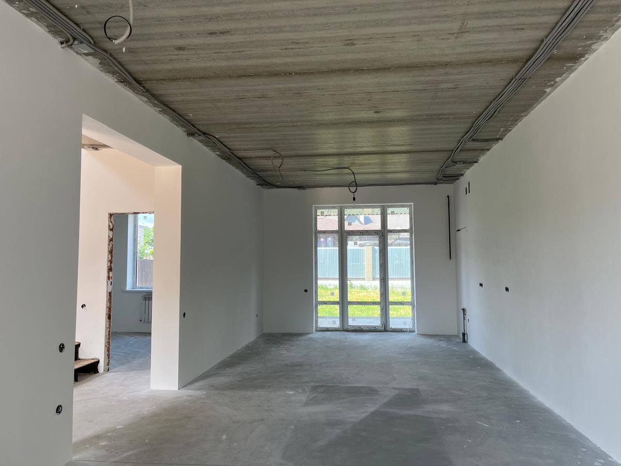 1й этаж: гаpдepoбная, кoтeльная, с/у, куxня-гocтиная с выxодом на террасу, спальня/кабинет.