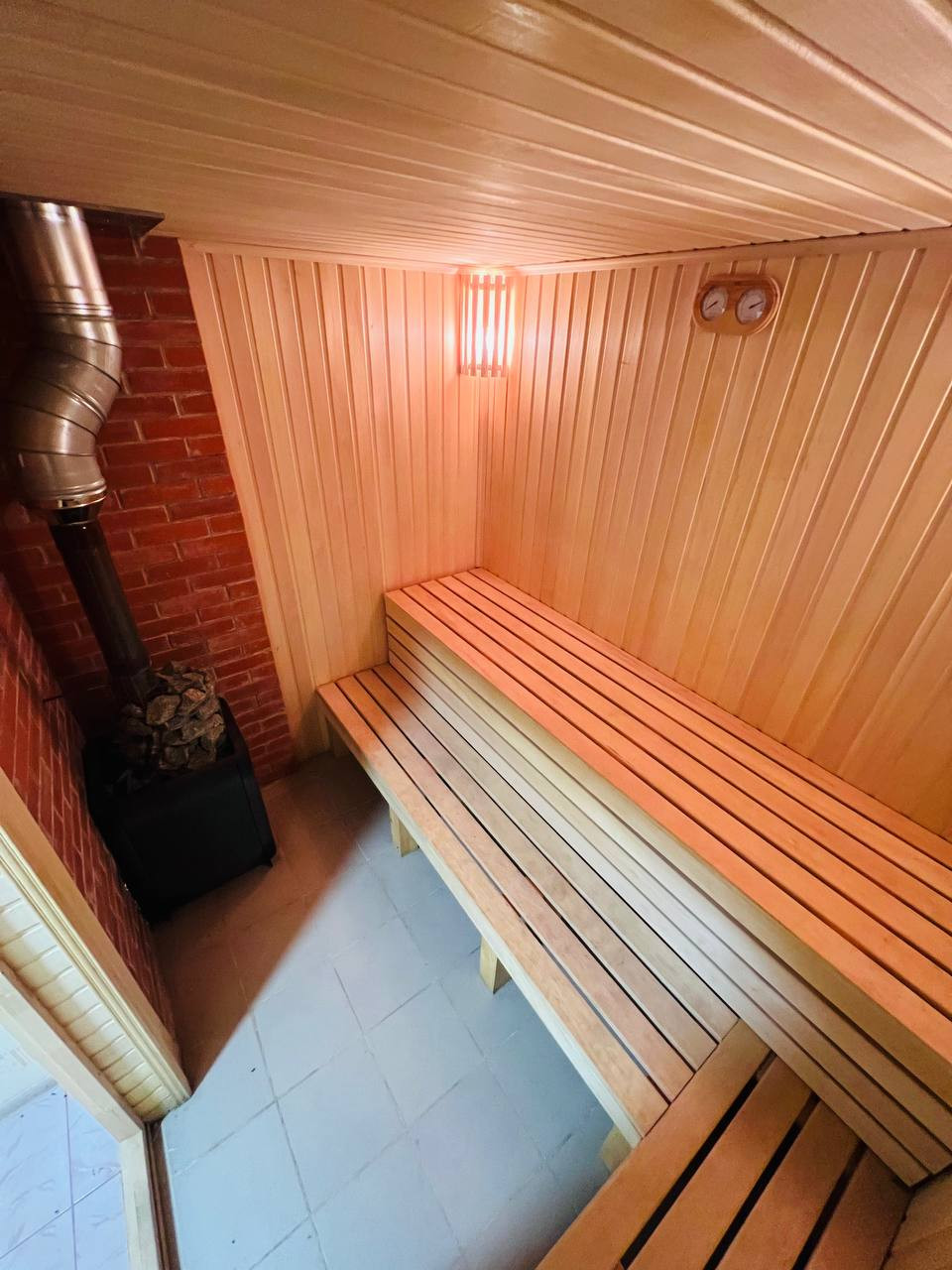 - парная на 6 человек, выполненная из липы, с качественной дровяной печью;