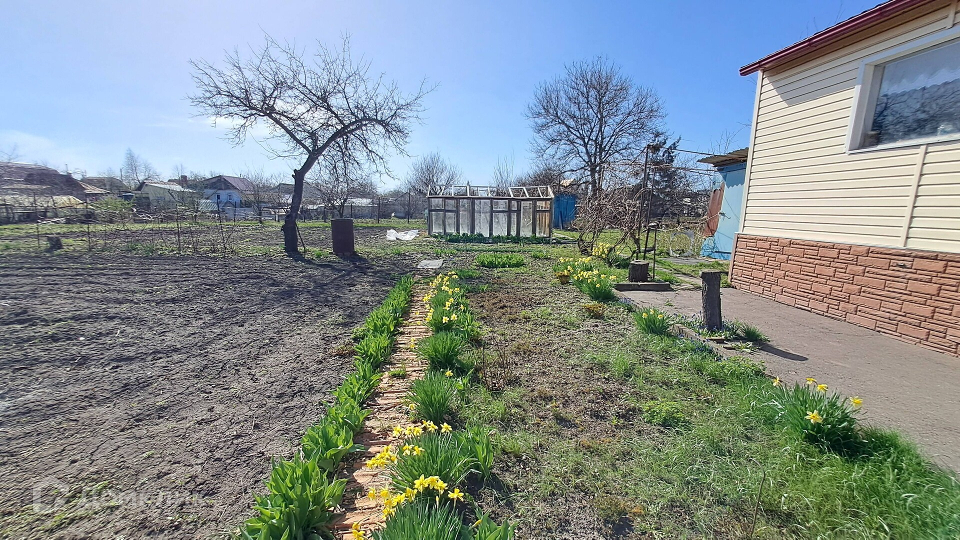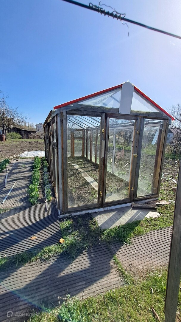 Земельный участок правильной формы с надворными постройками, гаражом, теплицей. Большое количество плодово-ягодных насаждений.