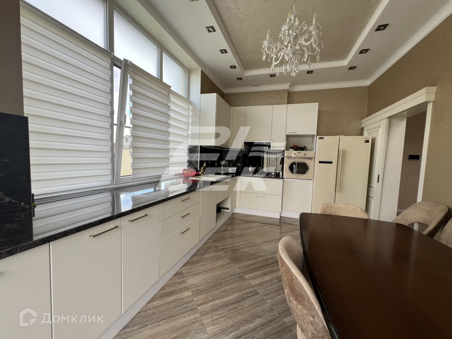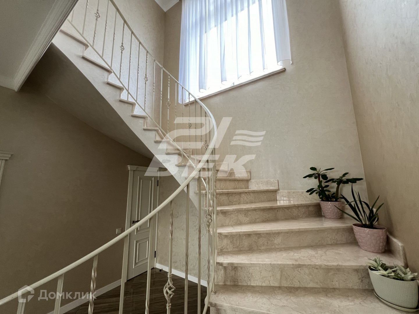 Большие витражные окна с ламинацией, выход на террасу из кухни, на втором этаже  балкон.  Потолки 4 метра. Пять комнат.